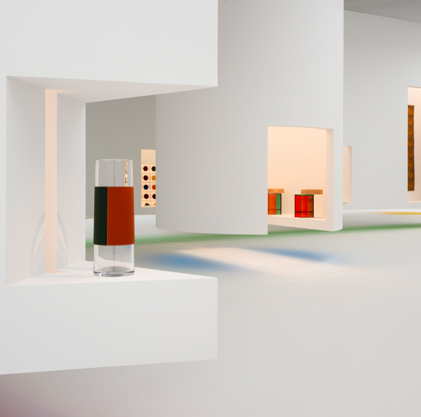 Дуэт художественных руководителей Hermès хотел возвысить экспонаты и представить «почти бесцветные» сосуды, напоминающие алтари, чтобы позволить многоцветной коллекции занять центральное место.