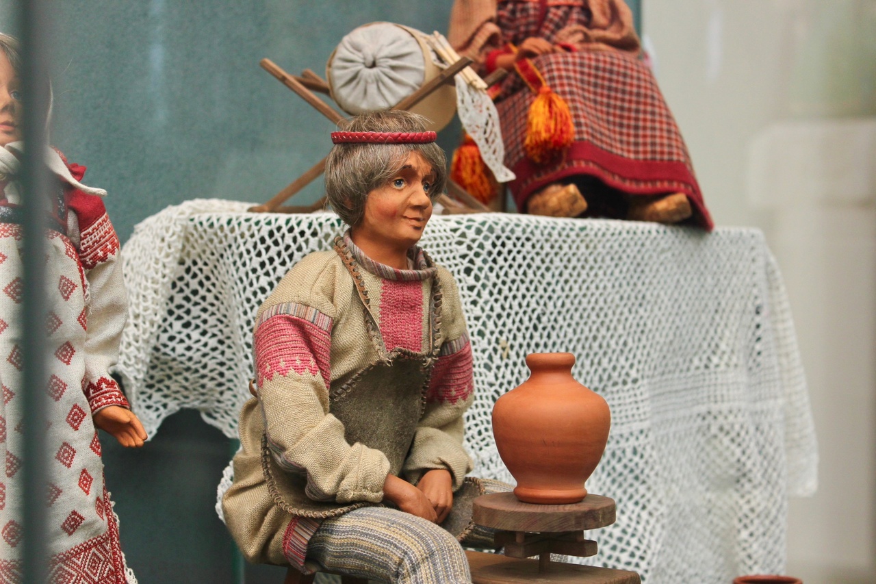 Выставка объединила коллекцию сувенирных кукол Вячеслава Позгалева, авторские куклы из фондов Череповецкого музейного объединения, куклы череповецких художников Марины Брауловой, Ирины Божко, Елены Ивановой, Майи Сысоевой и ткачество Евдокии Пановой.