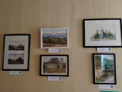 На картинах можно увидеть старинный город Козьмодемьянск, просторы реки Волги, этнографический музей под открытым небом им. В.И. Романова, Рождественскую церковь в Сумках, рассказали в музее.