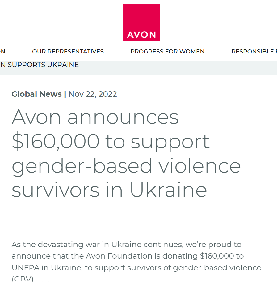 Царьград не нашёл страницу фонда Avon Foundation. Однако на сайте головной компании есть новость от ноября 2022 года о выделении 160 тыс. долларов на поддержку Украины.