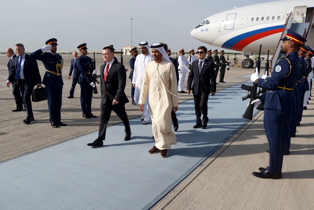 У трапа самолета главу российского надзорного ведомства встречал почетный караул, а также лично - чрезвычайный и полномочный посол РФ Тимур Забиров и Генпрокурор ОАЭ Хамад Саиф Аль-Шамси.