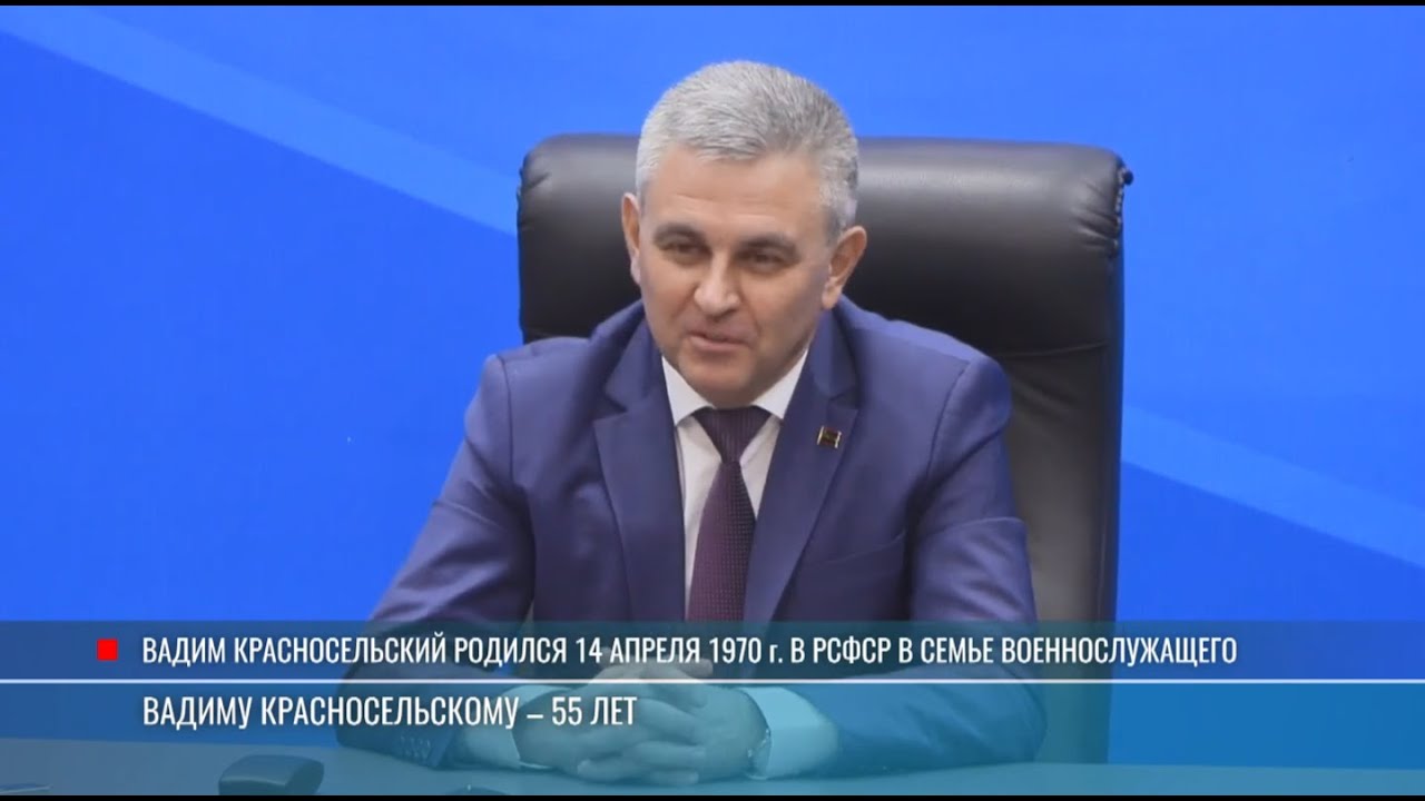 Сегодня юбилей отмечает Президент Приднестровья. Вадиму Красносельскому – 55 лет. Родился 14 апреля 1970-го в Забайкальском районе, посёлке Даурия – тогда это РСФСР. В семье военнослужащего. Когда Вадиму Красносельскому было 8 лет, переехали в Бендеры. Там и окончил школу, кстати, учился в одном классе с будущей супругой. После Вадим Красносельский учился в Харьковском военном училище. Окончил его с отличием. Также у Президента есть юридическое образование. С 1993-го Вадим Красносельский служил в милиции. С 2007 по 2012 был министром внутренних дел. В ноябре 2015-го Вадима Красносельского избрали в Верховный Совет. В том же году он возглавил парламент. Через год снова выборы. Вадим Красносельский становится Президентом. В 2021-м Вадима Красносельского переизбрали на второй срок. Президент – кандидат в мастера спорта СССР по академической гребле. У Вадима Красносельского трое детей и двое внуков.