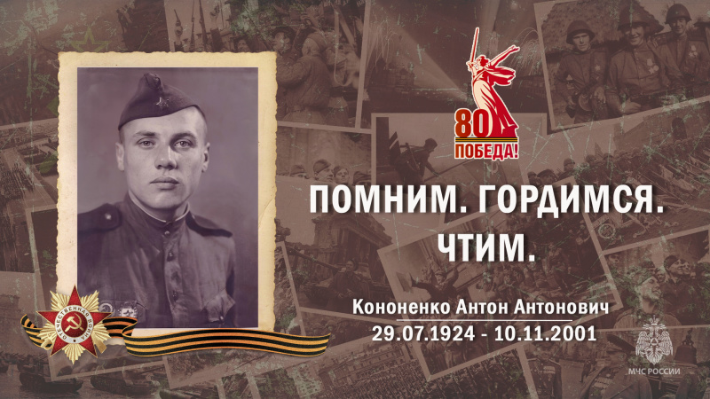 На фронтах Великой Отечественной войны сражались миллионы советских солдат и офицеров: танкисты, мотострелки, артиллеристы, летчики, десантники… Действия всех частей и подразделений помогал координировать «нерв армии» – военные связисты. Радисты, телефонисты, телеграфисты, механики дальней связи, сигнальщики, линейные надсмотрщики, работники фельдъегерско-почтовой связи, рискуя своими жизнями, под огнем тянули линии связи, передавали донесения, распоряжения, приказы, команды, доставляли письма бойцам из дома. Среди них помогал ковать победу Антон Антонович Кононенко, дедушка старшего инструктора-пожарного (спасателя) специализированной пожарно-спасательной части Главного управления МЧС России по Амурской области прапорщика внутренней службы Дениса Буднина.