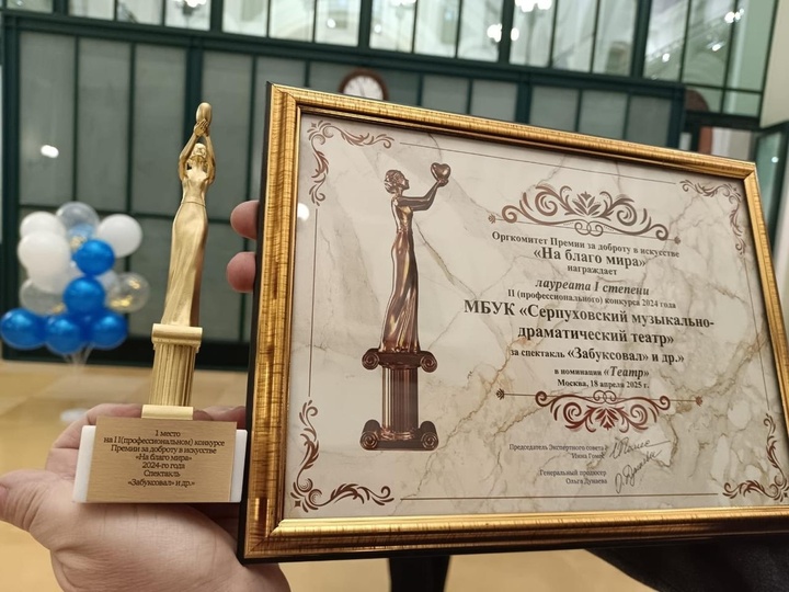 Серпуховский муниципальный музыкально-драматический театр вошел в число лауреатов национальной премии «На благо мира», получив высшую награду — Гран-при в театральной номинации. Торжественная церемония награждения состоялась 18 апреля в Москве, в Конгресс-центре Торгово-промышленной палаты Российской Федерации.