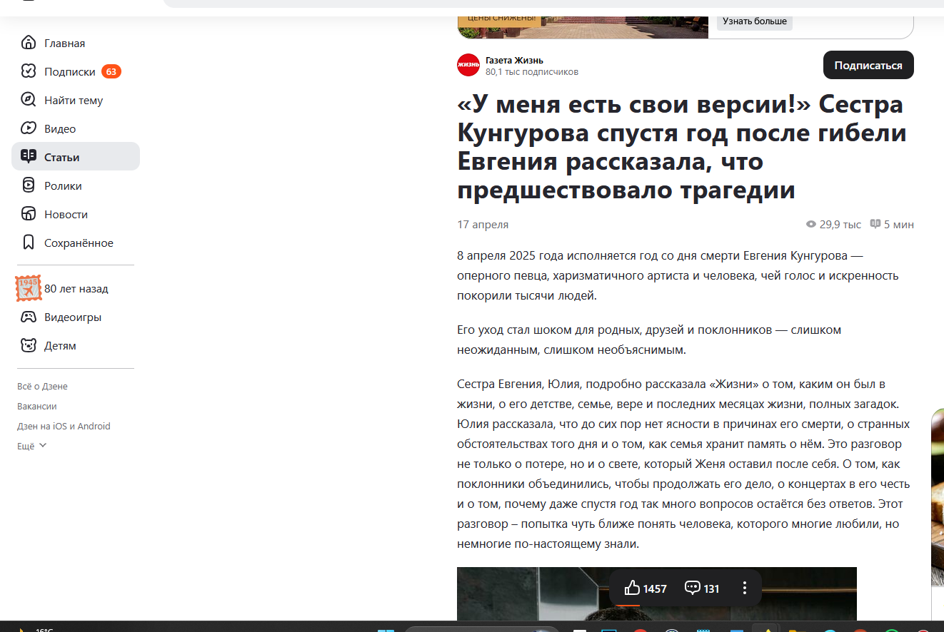 В апреле 2024 года ушёл из жизни певец Евгений Кунгуров. Он погиб. Почти сразу сказали, что это было самоубийство. Родные и близкие не могли поверить в это тогда. Судя по всему, не верят и сейчас. Спустя год после кончины заговорила сестра Евгения Кунгурова. Её слова цитируют журналисты: "У меня есть своя версия!".
