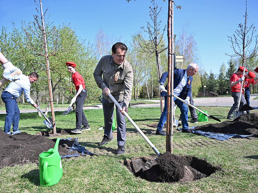 Акция «Сад памяти» проводится с 2020 года и стала доброй традицией. Ее цель – увековечить подвиги защитников Отечества, высаживая по дереву в память о каждом из 27 миллионов погибших в годы Великой Отечественной войны. Проект реализуется по поручению президента России Владимира Путина, он сам в 2020 году высадил памятное дерево у Ржевского мемориала.