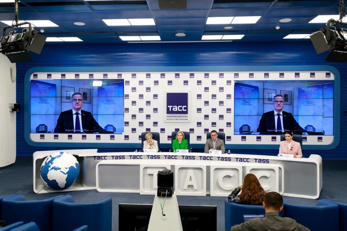 Министр культуры Российской Федерации Ольга Любимова, генеральный директор Российской государственной библиотеки Вадим Дуда, директор Российской государственной детской библиотеки Мария Веденяпина, генеральный директор Национальной библиотеки Беларуси, депутат Палаты представителей Национального собрания Республики Беларусь Вадим Гигин представили программу XIV просветительской акции «Библионочь‑2025», которая пройдёт 26 апреля, на