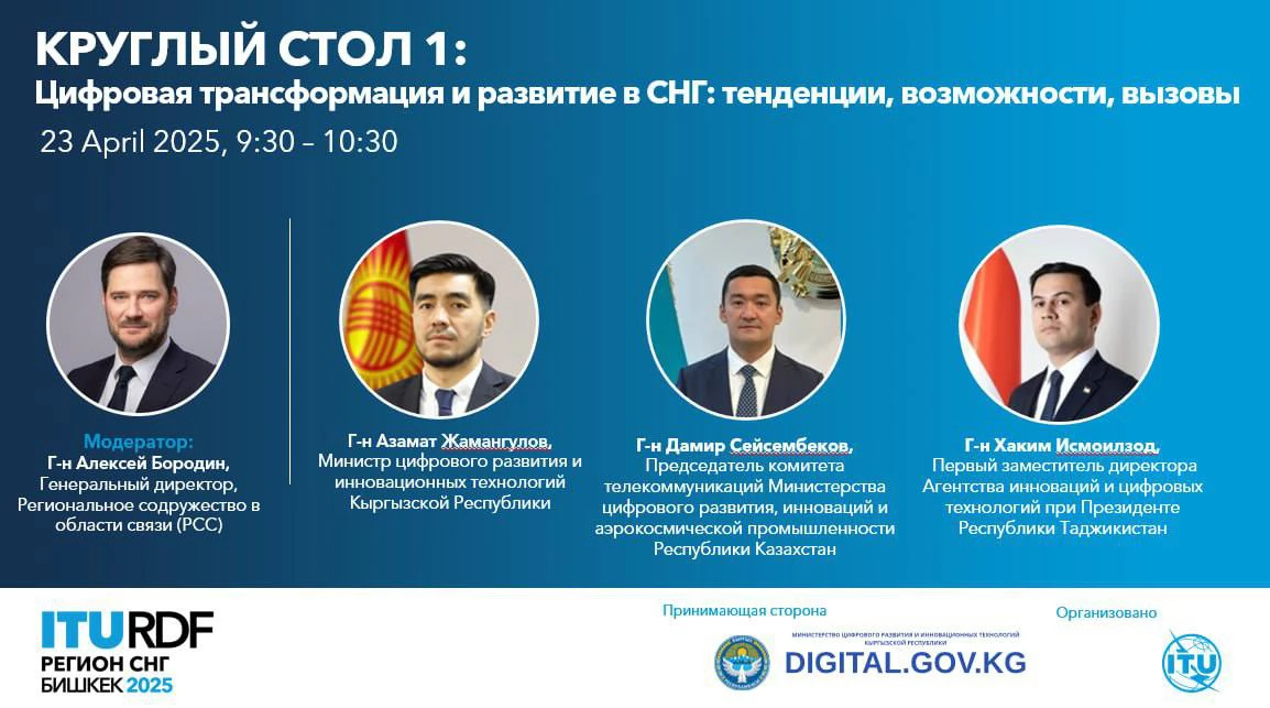 23 апреля в Бишкеке состоялся Региональный форум Международного союза электросвязи (МСЭ) по вопросам развития для региона Содружества Независимых Государств (РФР-СНГ, Форум), организованный МСЭ при поддержке Министерства цифрового развития и инновационных технологий Кыргызской Республики.