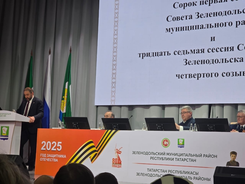 В мероприятии, прошедшем на площадке Центра культурного развития Зеленодольска, принял участие Премьер-министр Республики Татарстан Алексей Песошин. Основная тема заседания - итоги социально-экономического развития Зеленодольского муниципального района в 2024 году и задачи на 2025 год. С основным докладом выступил Глава Зеленодольского муниципального района, мэр г. Зеленодольска Михаил Афанасьев. В завершении заседания состоялось вручение государственных наград Республики Татарстан наиболее отличившимся зеленодольцам, в том числе работникам предприятий Судостроительной Корпорации «Ак Барс». Также в рамках мероприятия состоялась торжественная церемония вручения медалей «80 лет Победы в Великой Отечественной войне 1941–1945 годов».