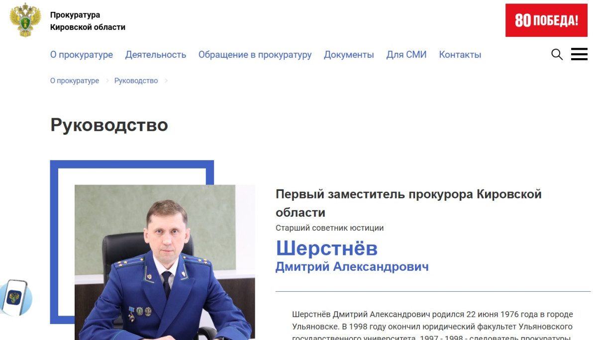 Исполняющим обязанности прокурора Кировской области сейчас является первый заместитель Андрея Оборока Дмитрий Шерстнев.