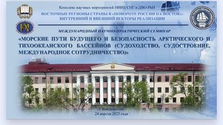 24 апреля 2025 года главный научный сотрудник Центра арктических исследований Отдела страновых исследований Института Европы РАН д.тех.н. С.Н. Гриняев в режиме онлайн принял участие в работе Международного научно-практического семинара «Морские пути будущего и безопасность Арктического и Тихоокеанского бассейнов», который состоялся в Морском государственном университете имени адмирала Г.И. Невельского (г. Владивосток).