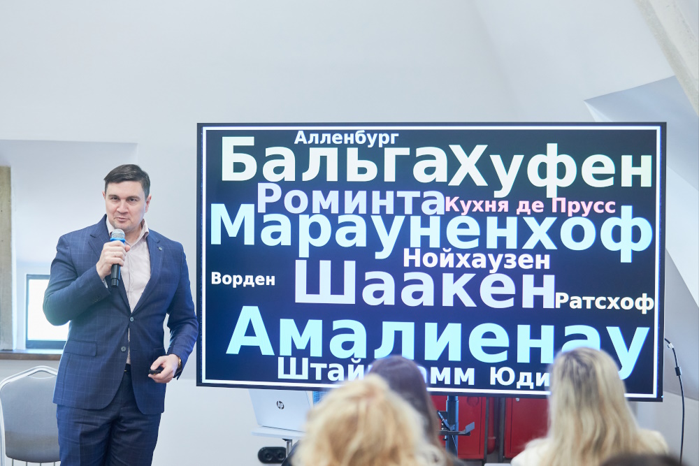 Станислав Солнцев осветил вопросы использования исторических брендов региона в современном бизнесе, в том числе продемонстрировал бренды замка Тапиау.