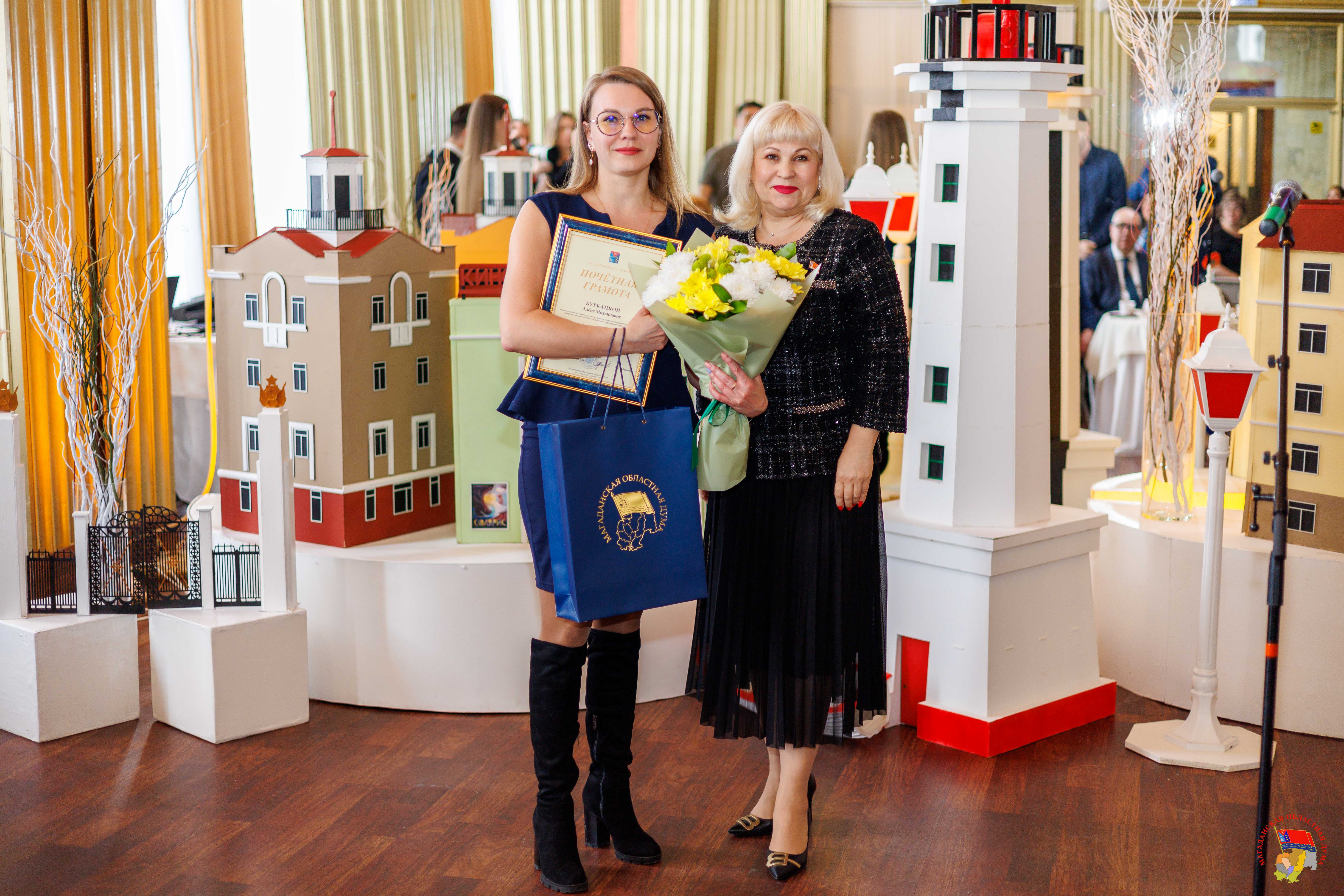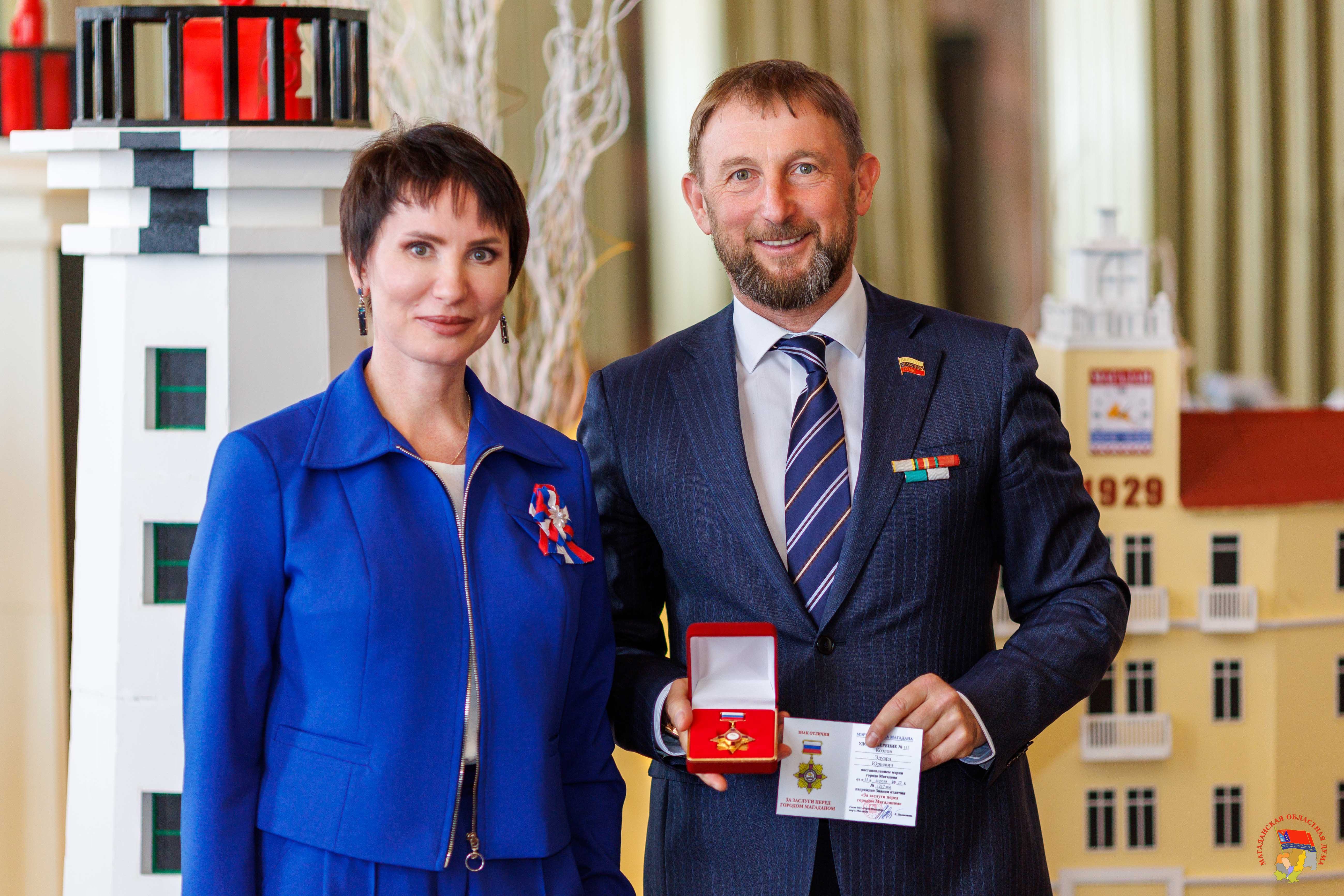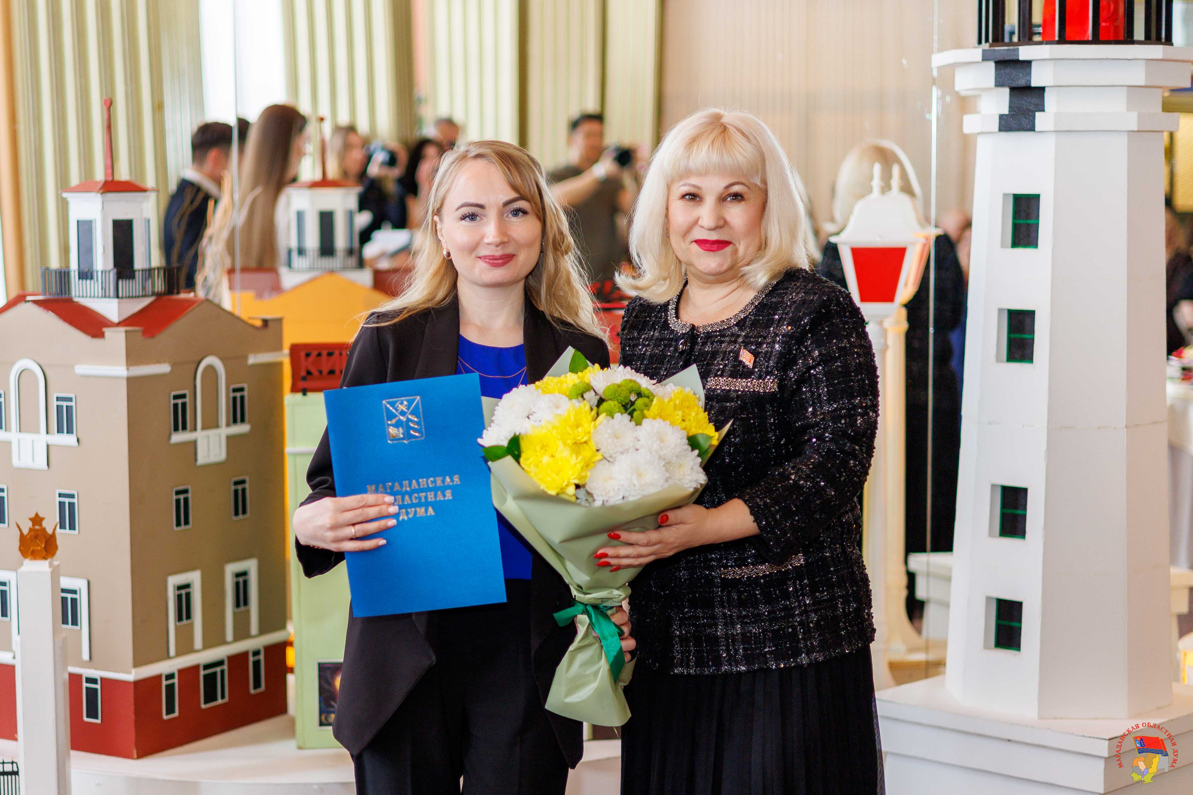 В Магадане состоялось торжественное мероприятие, посвященное Дню местного самоуправления, которое отмечается 21 апреля. Работников муниципального образования «Город Магадан» с праздником поздравили первый заместитель Председателя Магаданской областной Думы Эдуард Козлов, зампред Виктория Голубева, мэр Магадана Лариса Поликанова и заместитель председателя Правительства Магаданской области Юрий Гришан. За значительные заслуги в сфере жилищно-коммунального хозяйства и коммунальной инфраструктуры муниципального образования «Город Магадан» почетными грамотами Магаданской областной Думы были награждены начальник экономико-аналитического отдела департамента ЖКХ Алена Буркацкая и начальник отдела муниципального жилищного контроля департамента ЖКХ Валерий Половинка. Также награду за многолетний и добросовестный труд в органах местного самоуправления получила консультант финансово-экономического отдела управления культуры Мэрии города Магадана Ирина Галай. Благодарственными письмами заксобрания были поощрены консультант управления по делам молодежи и связям с общественностью Станислав Красовский и эксперт финансово-правового отдела управления по делам молодежи и связям с общественностью Ирина Сагирова. Вручая награды, зампред Виктория Голубева поздравила всех причастных с профессиональным праздником: «На плечах муниципальных служащих особая миссия – работа на благо народа. Именно от того, как вы будете взвешено принимать решения и выполнять поставленные задачи, будет зависеть уровень комфорта жизни колымчан. Желаю вам крепкого здоровья, счастья и удачи!». Также на торжественном собрании были вручены награды мэрии Магадана, объявлены почетные работники разных сфер и лучшие муниципальные служащие. Звание «Отличник муниципальной службы» было присвоено заместителю руководителя аппарата Магаданской городской Думы Снежане Вандышевой, начальнику отдела по муниципальной службе гордумы Елене Лысюк, руководителю департамента образования Алексею Юрздицкому, начальнику отдела общего образования департамента образования Анне Кашниковой, главному специалисту отдела дошкольного образования департамента образования Елене Полищук. Знаки отличия «За заслуги перед городом Магаданом» вручили вице-спикеру заксобрания Колымы Эдуарду Козлову и руководителю аппарата гордумы Елене Середе. «Пусть время, которое вы посвятили муниципальной службе, будет тем периодом жизни, которым впоследствии вы будете гордиться, - обратился к собравшимся парламентарий. – Пусть все ваши начинания, направленные на улучшение жизни в городе, находят положительный отклик от магаданцев». Кроме того, знаком Всероссийской ассоциации развития местного самоуправления были отмечены заместитель мэра города Магадана Евгения Тихомирова и начальник отдела опеки и попечительства департамента образования Галина Паньшина. Медаль ВАРМСУ за развитие местного самоуправления вручили первому заместителю мэра города Магадана Александру Малашевскому.