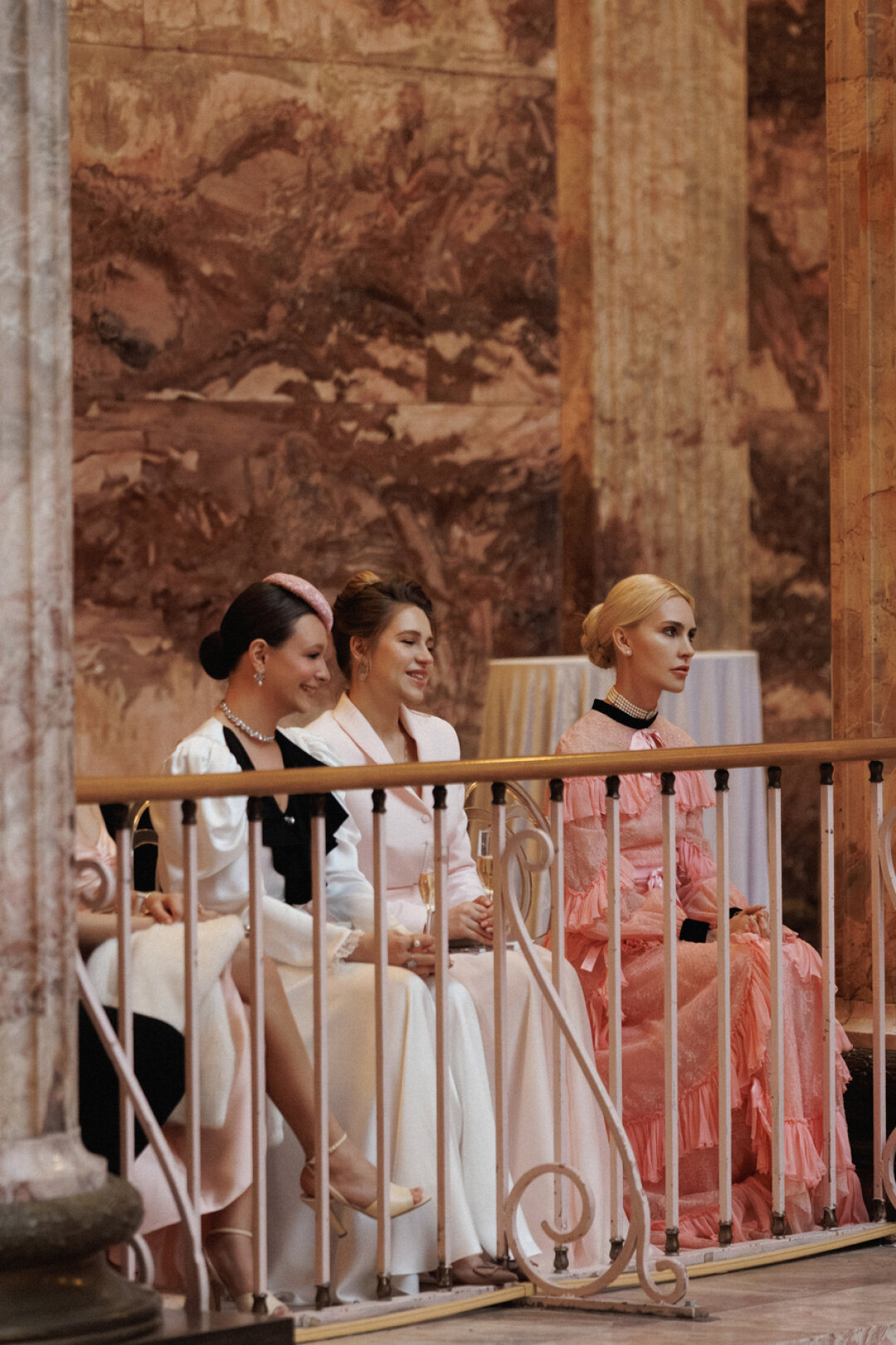Дресс-кодом для дам были заявлены розовый и лимонный оттенки и украшения из новой весенней коллекции «Русской сказки» — в том числе неповторимые пасхальные колье.