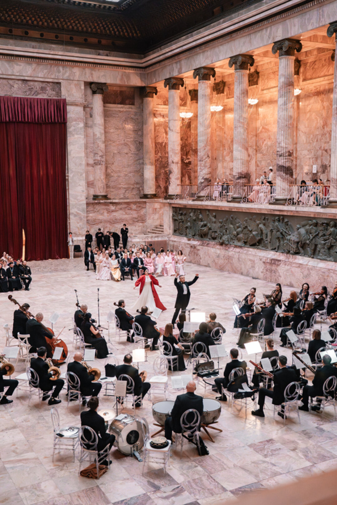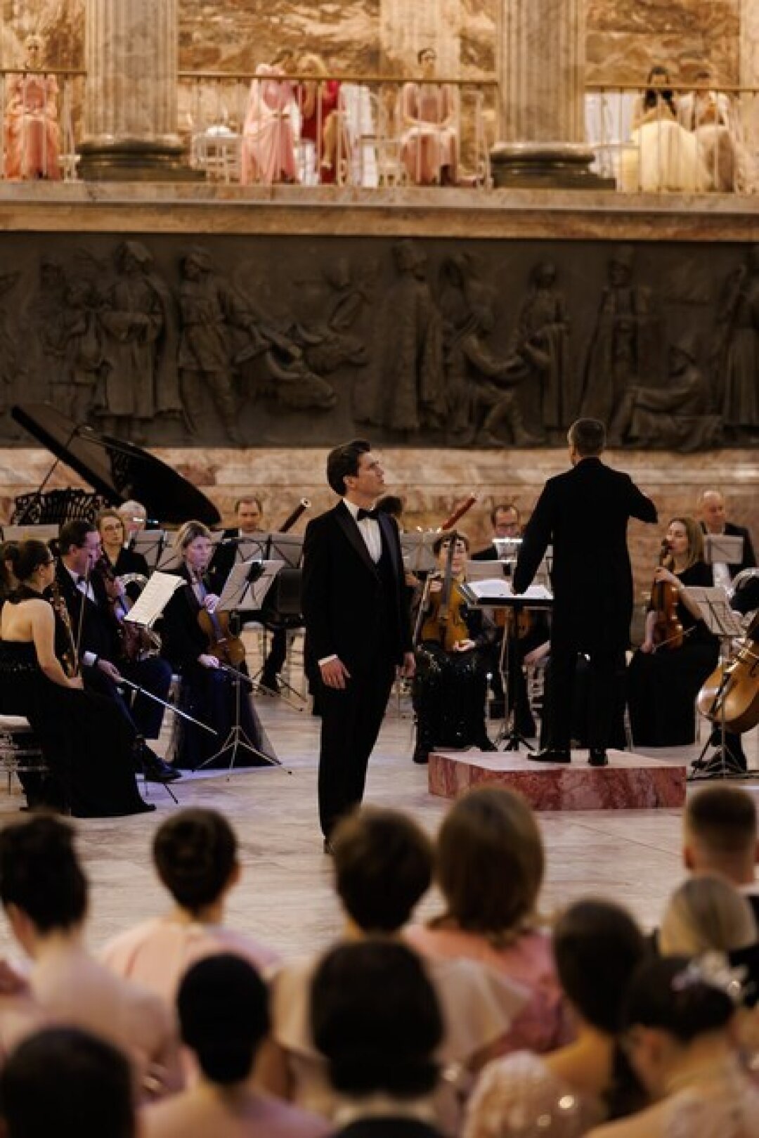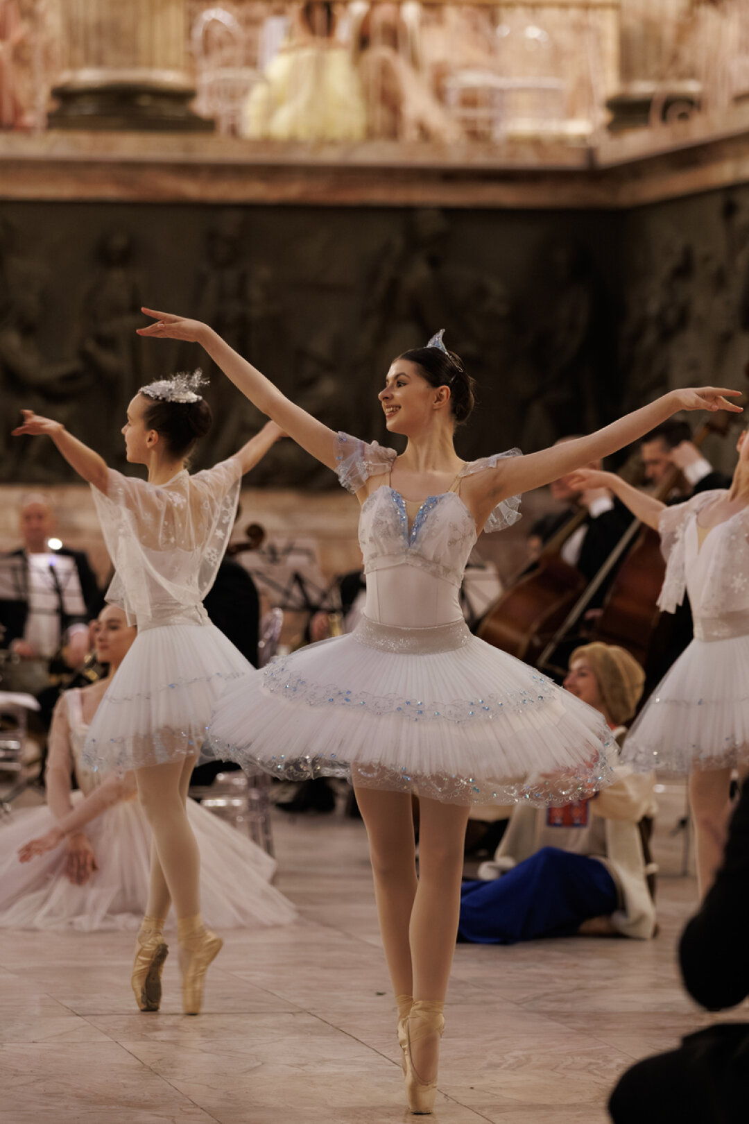 В мемориальном зале императора Александра III, отделанном розовым карельским мрамором, звучали лучшие произведения мировой музыкальной классики. Балтийский симфонический оркестр Санкт-Петербурга под руководством Артема Абашева открыл концерт Полонезом из оперы «Евгений Онегин», продолжили концерт вальсы Верди и арии Моцарта и Бизе и музыкальные темы из опер Римского-Корсакова. Солисткой концерта стала неподражаемая оперная дива Элеонора Макарова. Музыку дополнили балетные номера, исполненные учениками «Школы классического танца».
