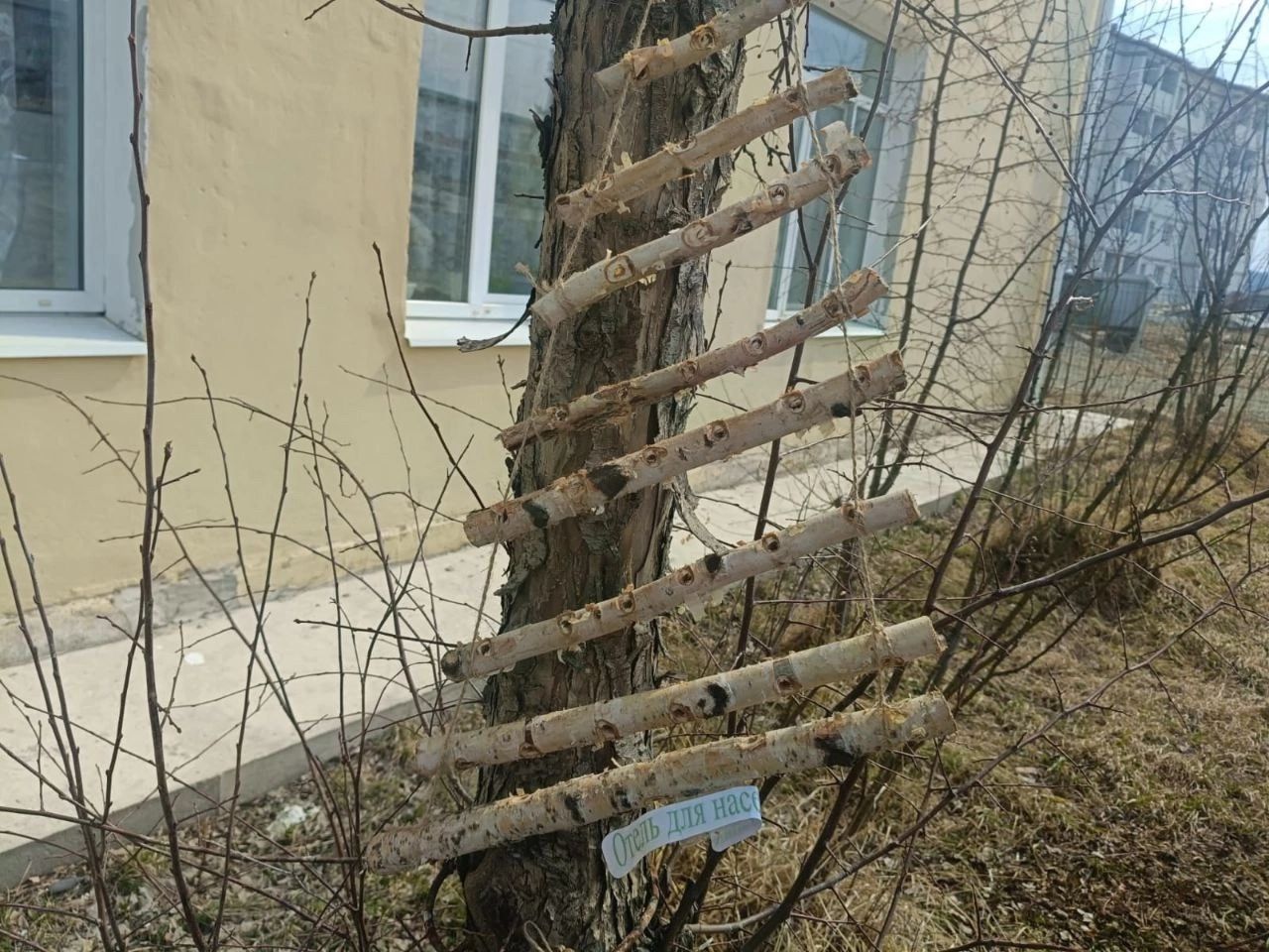 В Талдане школьники из клуба «Юннаты Первых» создали и установили на территории учебного заведения необычные экоотели для насекомых.
