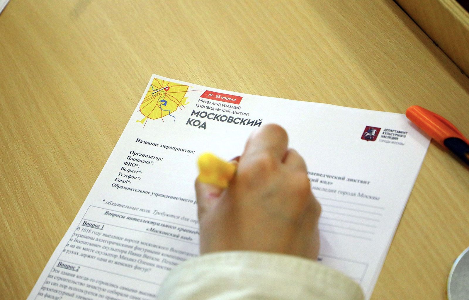 В Москве подвели итоги восьмого краеведческого диктанта «Московский код», который прошёл в столице с 19 по 25 апреля. Акция проводилась на 33 культурных и образовательных площадках города. Проверить свои интеллектуальные знания в онлайн-формате можно было на портале «Узнай Москву» и в проекте «Активный гражданин.