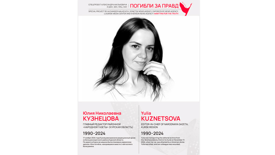 «В целях сохранения памяти о работниках российских и иностранных СМИ, ставших жертвами преступлений киевского режима с 2014 года, мы хотели бы обратить внимание на проект „Погибли за правду“, подготовленный Донецким агентством новостей, Запорожским агентством новостей, Луганским информационным центром, Херсонским агентством новостей во взаимодействии с журналистом, членом Совета при Президенте Российской Федерации по развитию гражданского общества и правам человека А.А.Малькевичем», — подчеркнули в представительстве.