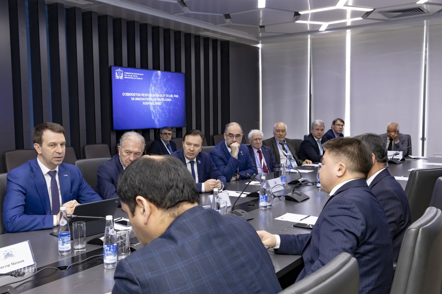 Первый замминистра рассказал о реформе высшего образования и науки в Узбекистане, проходящей в последнее десятилетие. Значительно увеличилось количество университетов, подход к науке в которых был также преобразован. В том числе в Республике открыты 14 филиалов вузов Российской Федерации. По опыту РФ также началось развитие системы передовых инженерных школ.