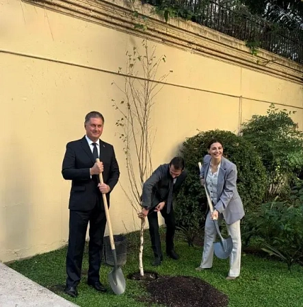 28 апреля с.г. Посол Д.В.Феоктистов и председатель Группы дружбы с Россией в Палате депутатов Национального Конгресса Аргентины М.Пагано приняли участие в Международной акции «Сад памяти». В преддверии 80-й годовщины окончания Великой Отечественной войны они высадили на территории Посольства один из символов России – берёзу – в знак уважения и благодарности к подвигу победителей, спасших мир от угрозы нацизма, сообщает Всемирная Россия.