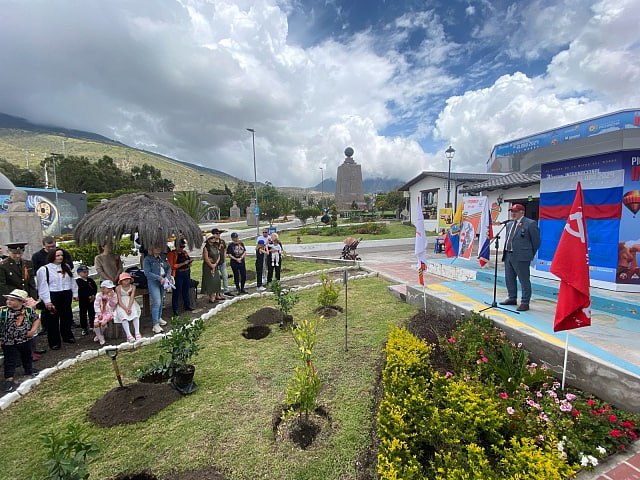 К высадке саженцев в Эквадоре присоединились российские соотечественники, выпускники российских вузов, дипломаты и члены их семей. Деревья будут расти на территории музейного комплекса «Митад дель Мундо» («Середина мира»).