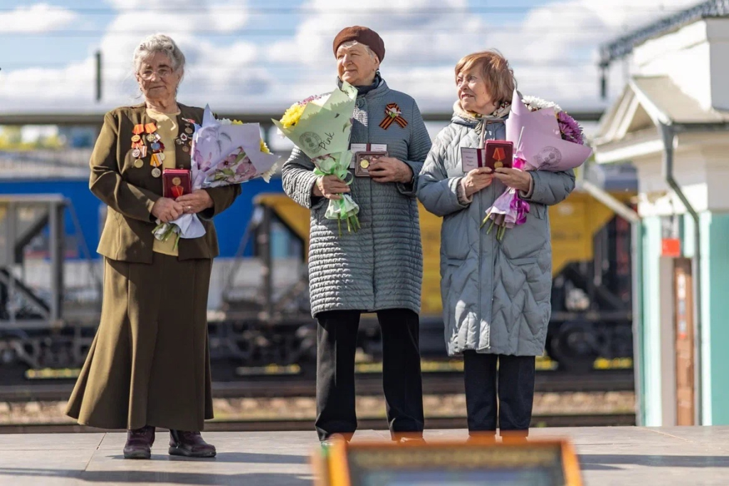 Праздничное мероприятие с участием официальных лиц, духовенства и ветеранов состоялось на перроне железнодорожного вокзала.