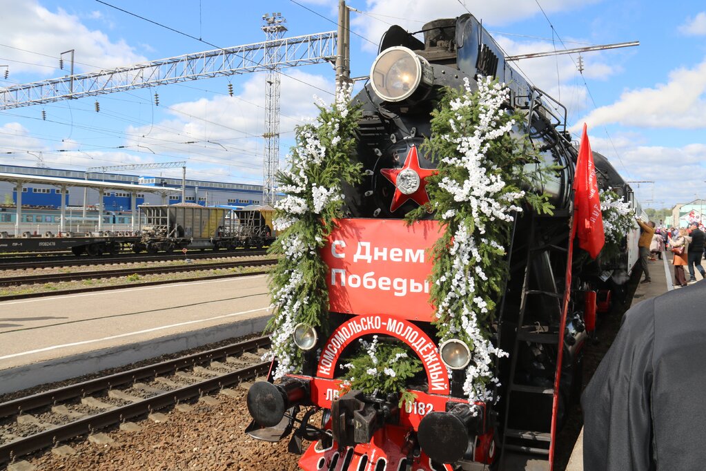 Празднично оформленный железнодорожный состав проследует из Смоленска по местам боевой славы с остановками в Ярцеве, Сафонове и завершением маршрута в Вязьме.