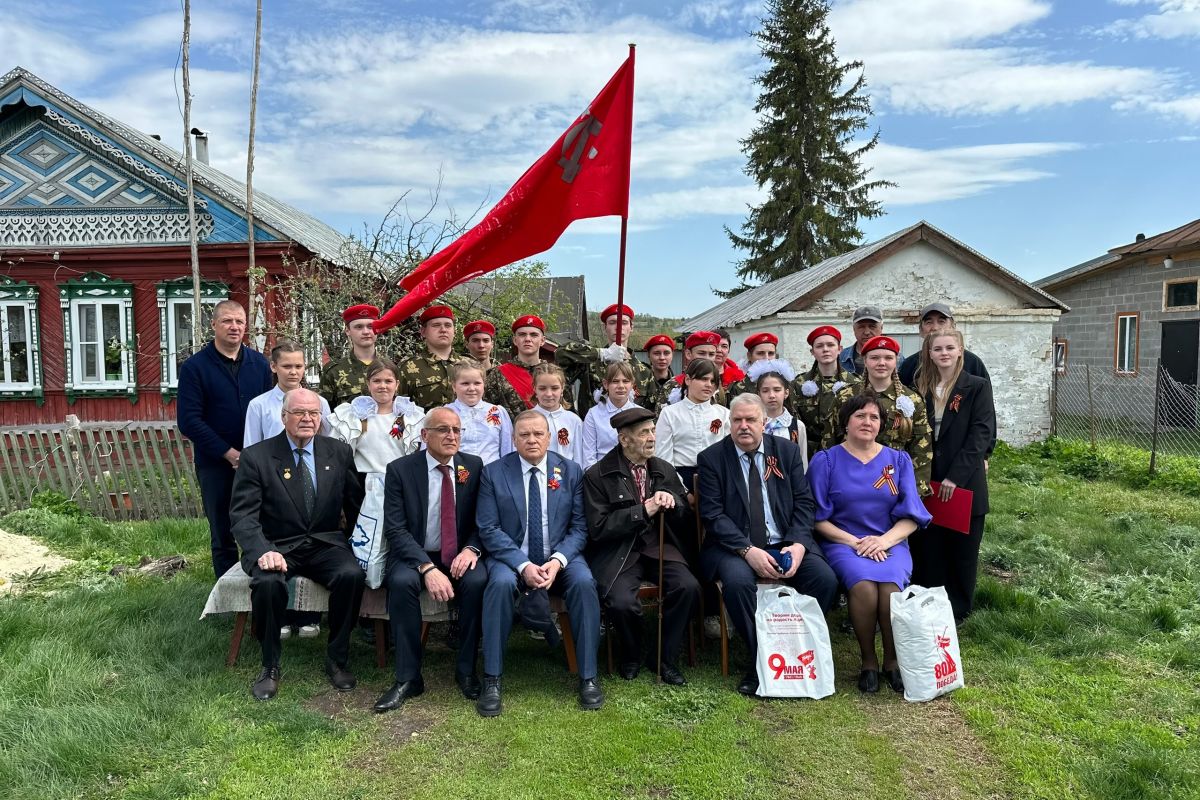 Перед домом фронтовика организовали праздничную программу: школьники подготовили концерт с песнями военных лет, стихами и тёплыми словами благодарности. Парламентарии передали ветерану памятные подарки от партии.