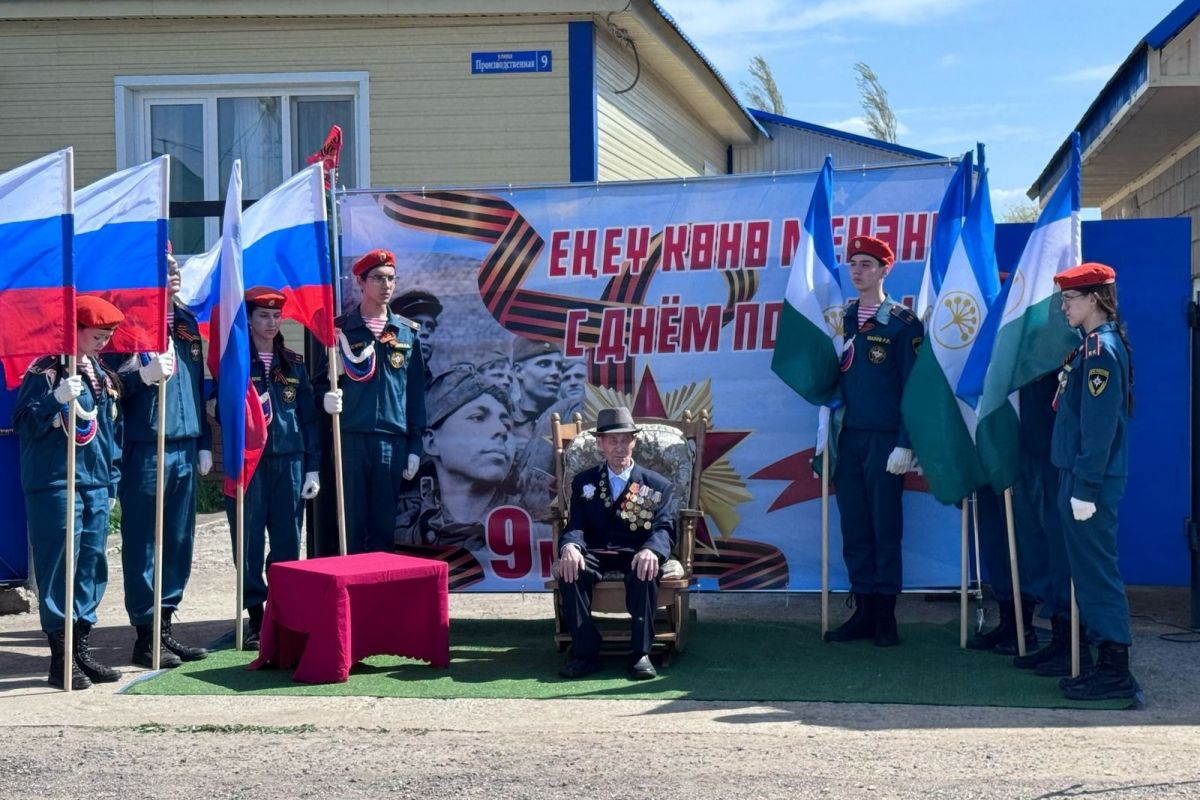 В Уфе около дома фронтовика Сафуана Басырова организовали концерт духовой музыкой. Торжественным маршем прошли кадеты школ Калининского района города. Ветерана поздравил член местного политсовета Газизьян Ахмедьянов.