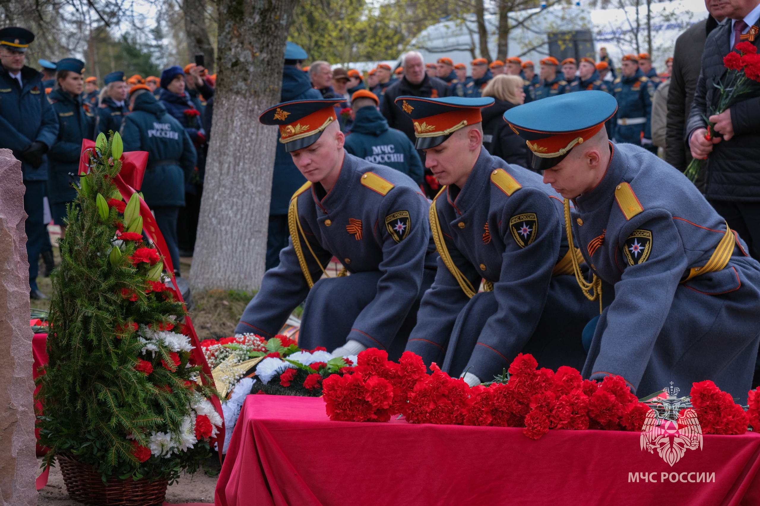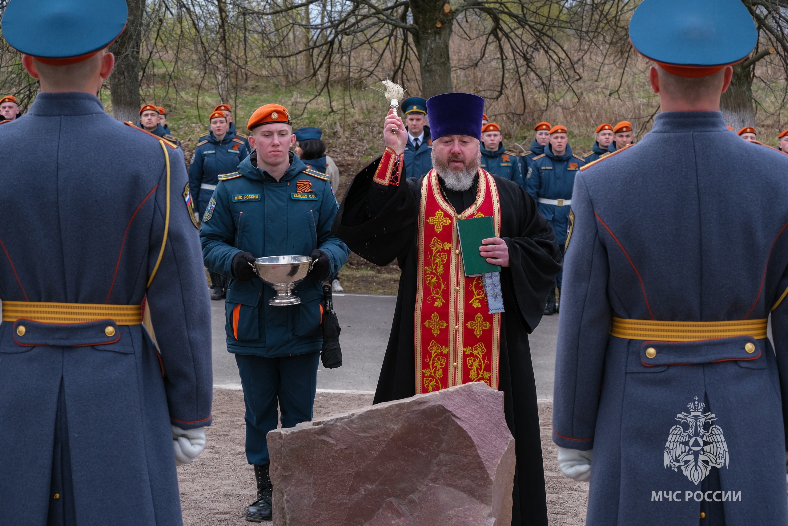 Кульминационным моментом мероприятия стало официальное открытие закладного камня. После этого был проведён чин освящения мемориального объекта священнослужителем Русской Православной Церкви. Далее состоялась церемония возложения цветов, в которой приняли участие делегации от Правительства Санкт-Петербурга и Правительства Вологодской области, руководство пожарно-спасательных гарнизонов Санкт-Петербурга и Ленинградской области, представители вологодского землячества Санкт-Петербурга и ветераны.