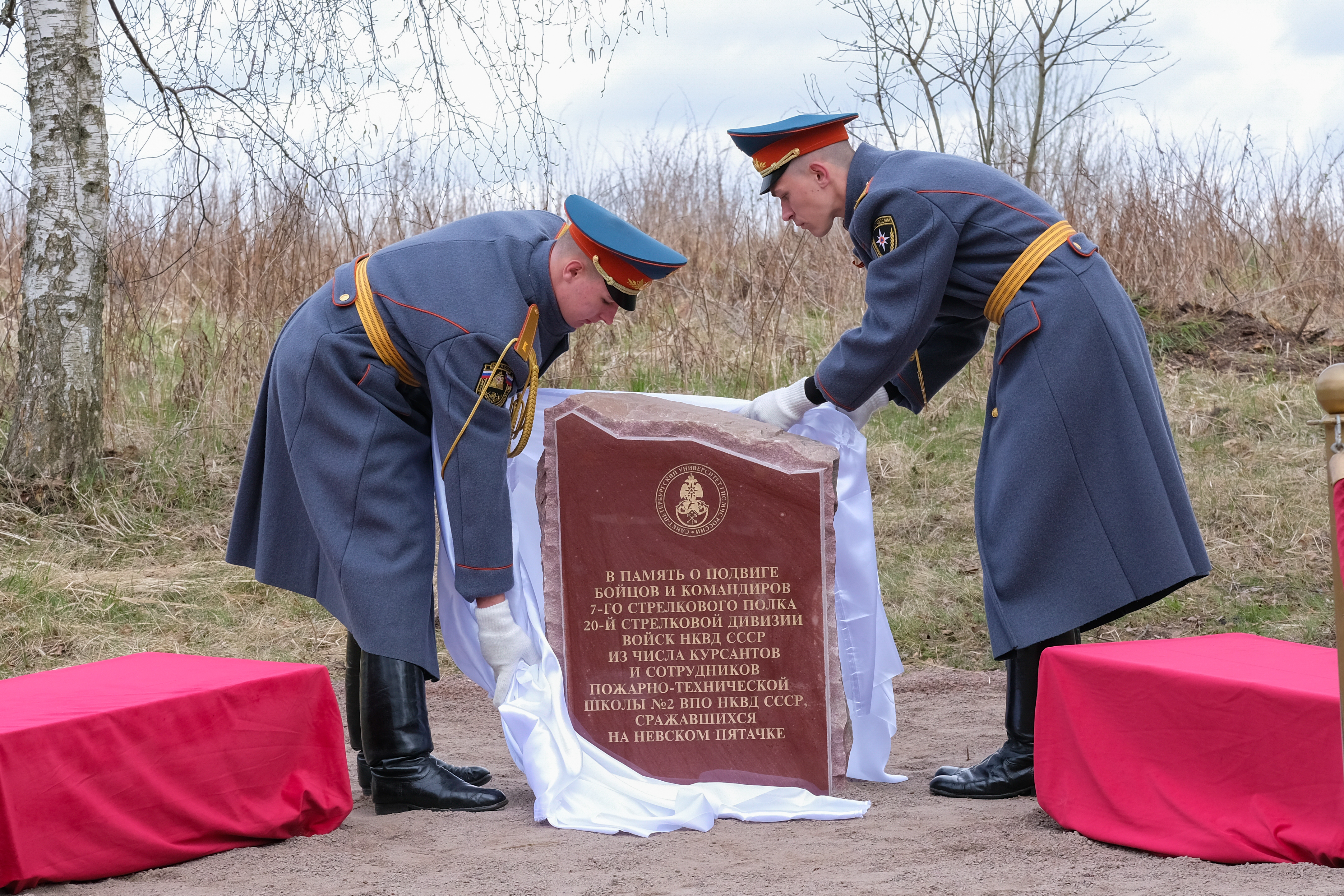 В рамках празднования 80-летия Победы в Великой Отечественной войне на мемориальном комплексе «Невский пятачок» состоялось торжественное открытие закладного камня, увековечивающего подвиг бойцов и командиров 7-го стрелкового полка 20-й стрелковой дивизии войск НКВД СССР из числа курсантов и сотрудников Пожарно-технической школы №2 ВПО НКВД СССР (сегодня - Санкт-Петербургский университет ГПС МЧС России), погибших и пропавших без вести на Невском пятачке.