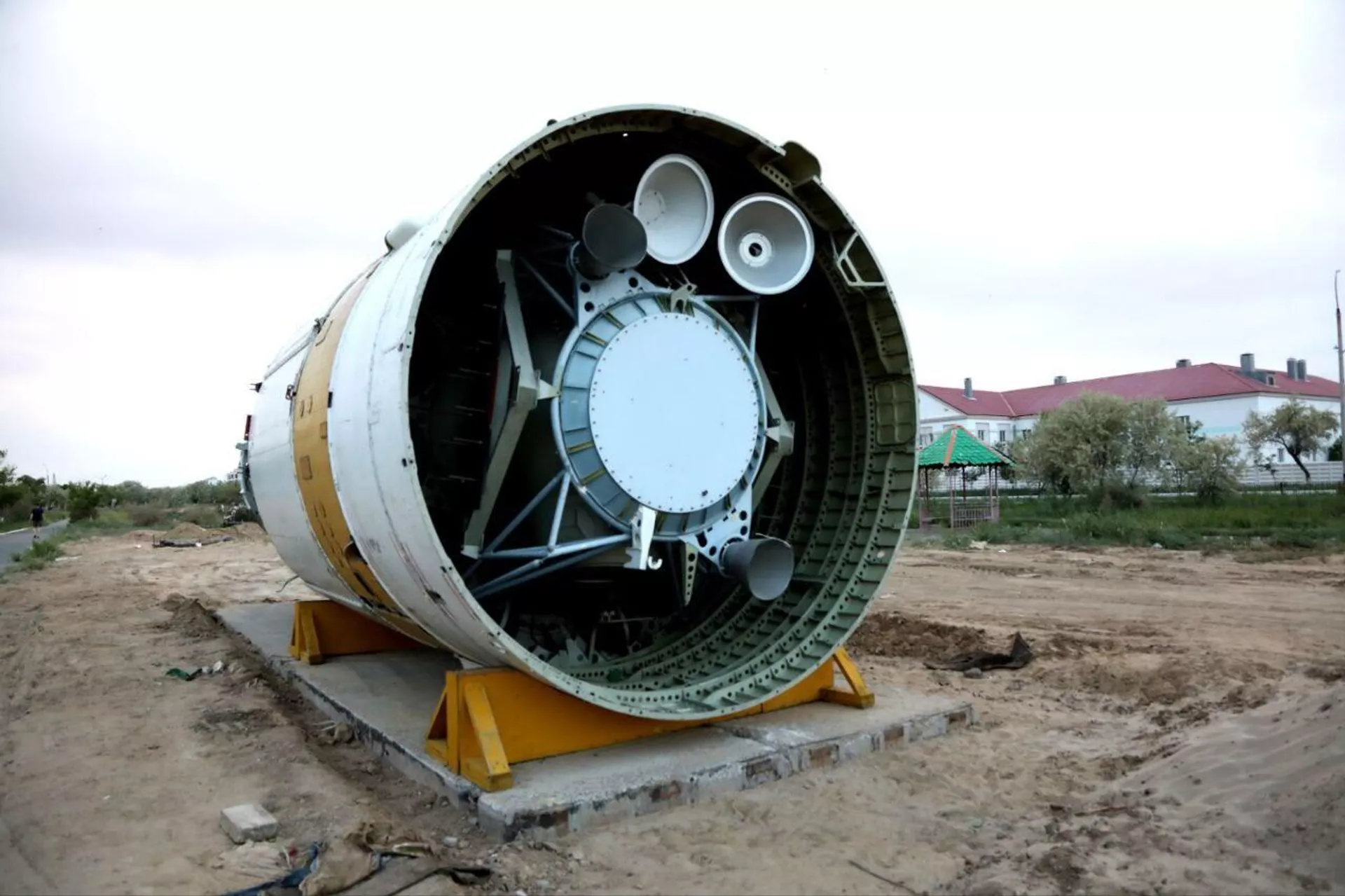 Музей под открытым небом в городе Байконуре пополнился еще одним экспонатом - орбитальной станцией "Алмаз"