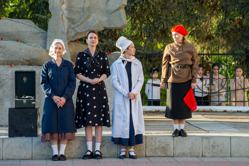 На один час площадка у гимназии № 1 превратилась танцевальную. Зрителям рассказали одну историю, случившуюся с челябинцами 80 лет назад… Ученики, педагоги и родители, среди которых немало выпускников гимназии, читали стихи, пели и, конечно же, танцевали