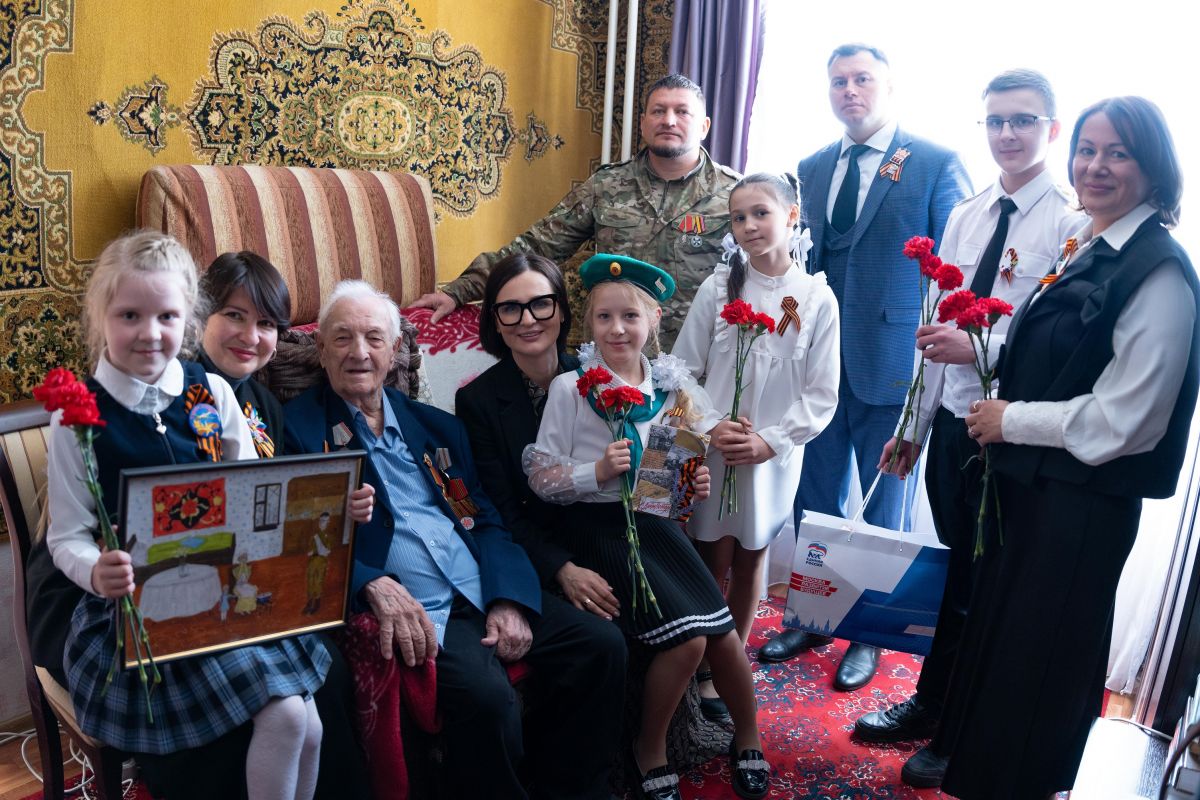 Парламентарий приехала к участникам Великой Отечественной войны в Кировском округе, где школьники и юнармейцы совместно с сотрудниками Дома культуры организовали торжественные парады у домов ветеранов.