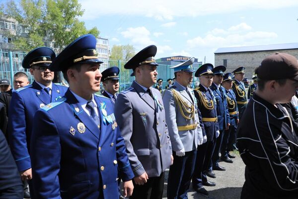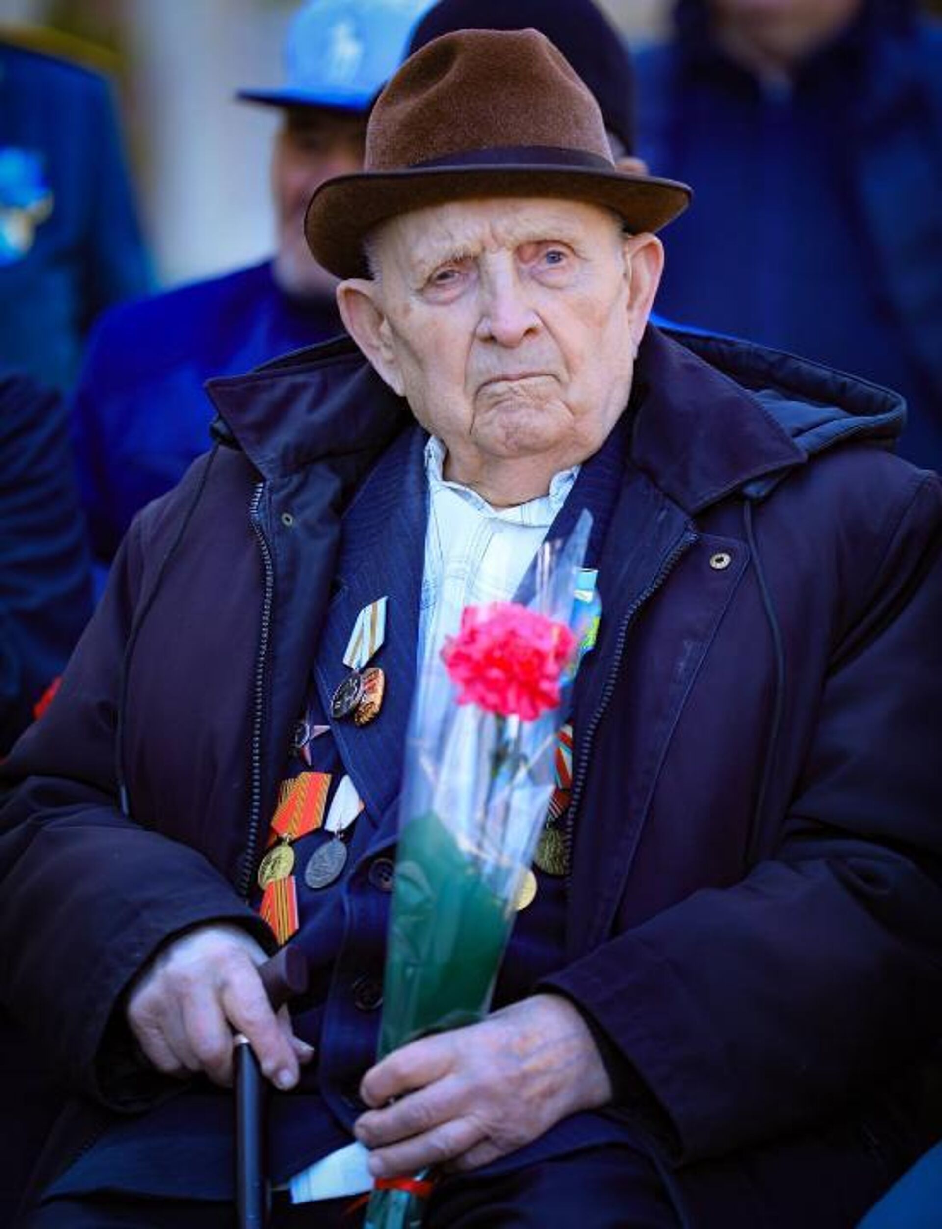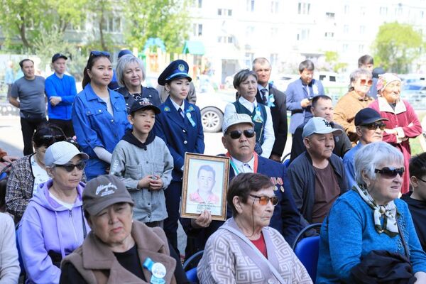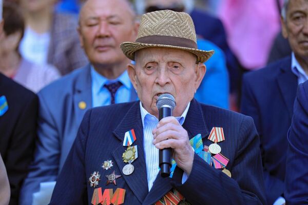 Возле дома ветерана прошел торжественный митинг. Поздравить его пришли представители областного и районного акиматов, военного комиссариата, молодежь, учащиеся, представители общественных организаций, а также жители города.