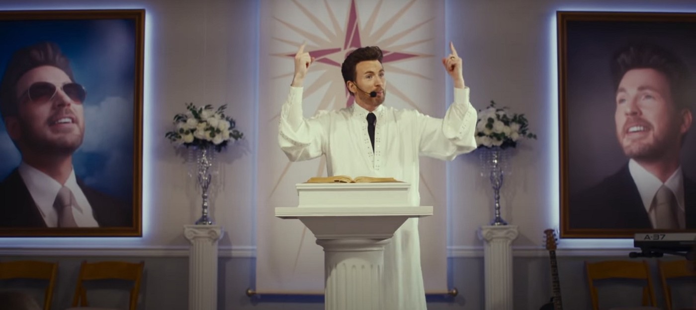 Крис Эванс ("Мстители") в роли самовлюбленного лидера местного культа особенно хорош.