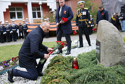 В День Победы глава региона посетил Госпиталь для ветеранов войн в Калининграде. В учреждении состоялось праздничное мероприятие «Великая поступь Победы!», посвященное 80-й годовщине Победы в Великой Отечественной войне.