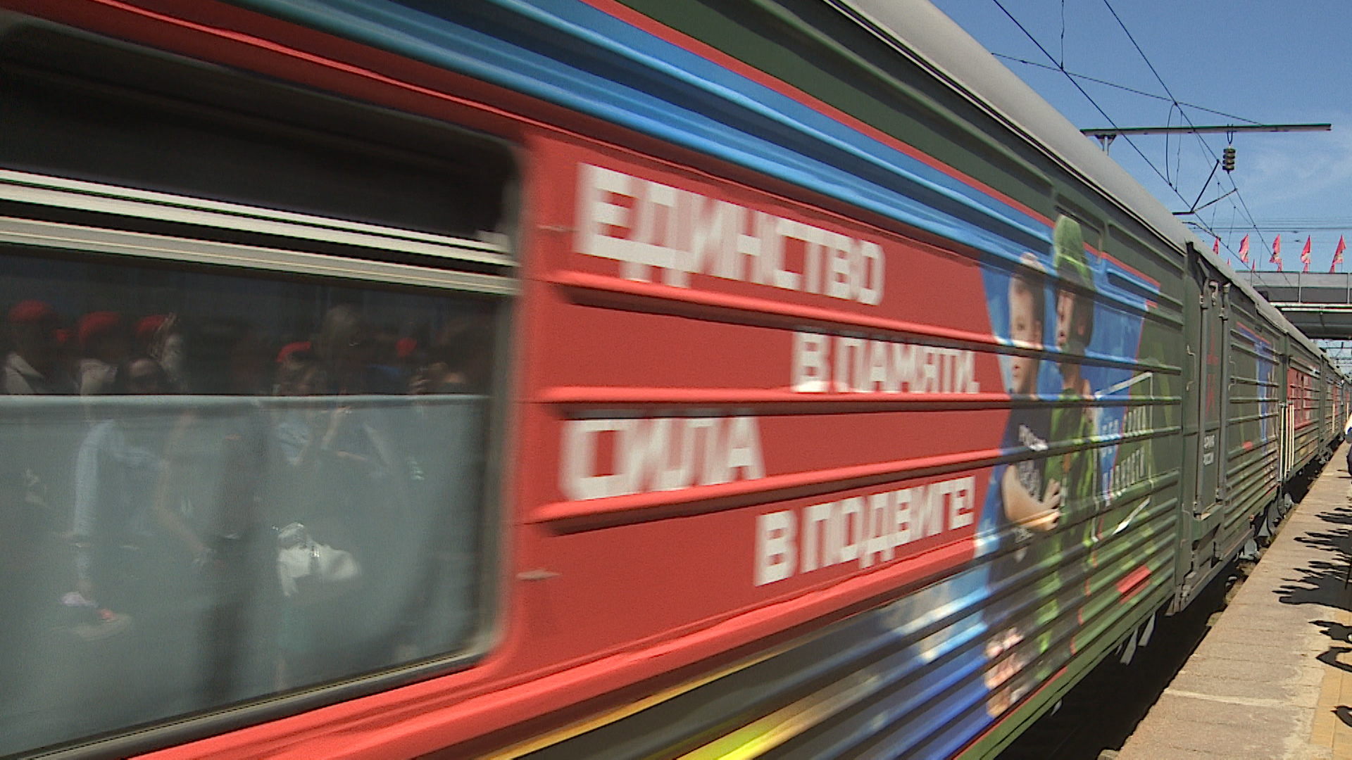 На железнодорожный вокзал прибыл агитпоезд Минобороны «Единство в памяти. Сила в подвиге». В составе эшелона четыре платформы с трофейной и нашей техникой, восемь вагонов, посвященных военной истории России и подвигам ее защитников.
