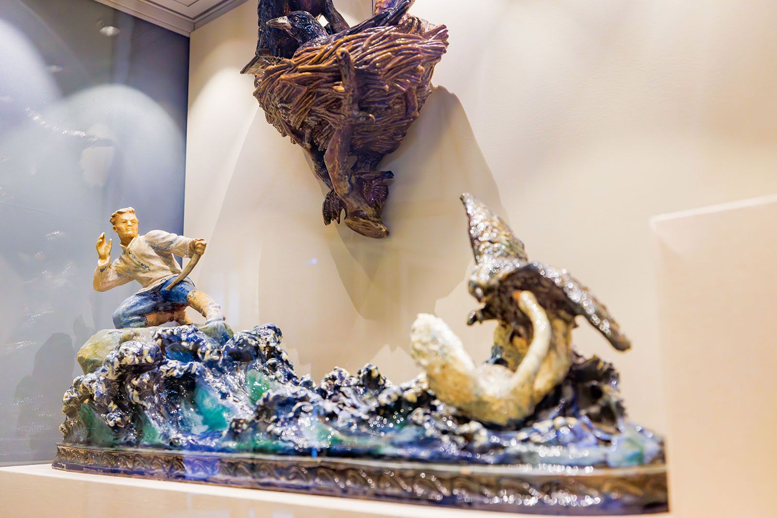 После войны к керамике обращалось все больше профессиональных художников из самых разных областей искусства. Прокопий Добрынин создает скульптурную группу «Гвидон» по «Сказке о царе Салтане» Александра Пушкина, Наталья Максимченко посвящает серию работ героям произведений Николая Гоголя.