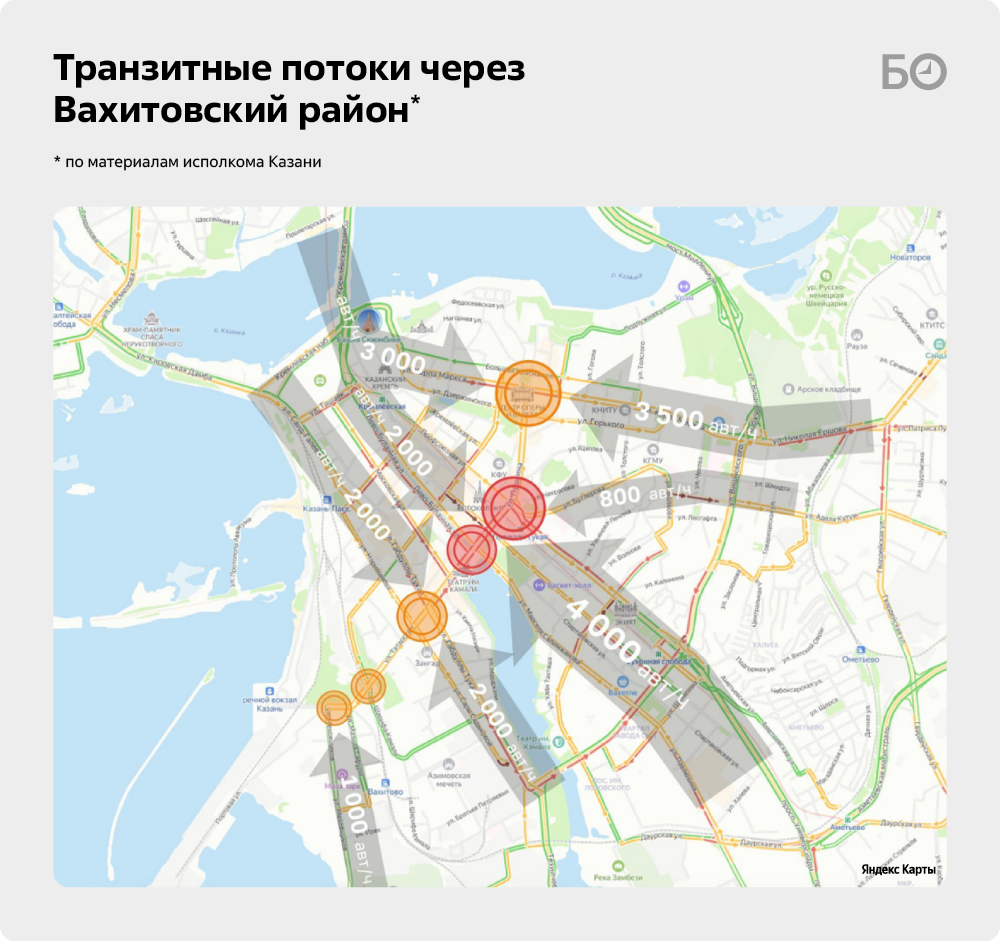 - Дорога-дублер Горьковского шоссе. Этот вариант самый проработанный: первый отрезок от ул. Несмелова до Храма всех религий запустили в 2023-м, а второй, длиной 9 км, уже спроектировали по заказу ГКУ «Главтатдортранс», вложив 233 млн рублей. В прошлом году за 27 млрд рублей завершили реконструкцию основной дороги, но с темпами застройки «Большого Зеленодольска» эффект от денежных вливаний исчезнет за 5–7 лет.