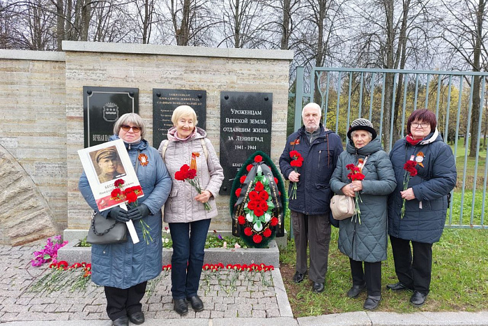 В День Победы участники Вятского землячества в Санкт-Петербурге на Пискаревском кладбище возложили цветы к мемориальной плите, посвященной вятским воинам.