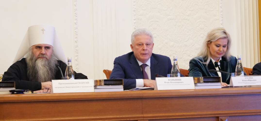 На заседании присутствовали митрополит Нижегородский и Арзамасский Георгий, викарий Нижегородской епархии, руководитель отдела по взаимодействию с высшей школой епископ Дальнеконстантиновский Филарет, епископ Нарьян-Марский и Мезенский Софроний, заместитель полномочного представителя Президента РФ в Приволжском федеральном округе Игорь Паньшин, министр международных и межрегиональных связей Нижегородской области Ольга Гусева, заместитель министра молодежной политики Нижегородской области Лев Скитневский, начальник отдела по взаимодействию с образовательными организациями высшего образования и научно-образовательной сферой министерства образования и науки Нижегородской области Ирина Зверева, Председатель Совета ректоров вузов Приволжского федерального округа, президент Нижегородского государственного университета (ННГУ) имени Н.И. Лобачевского Роман Стронгин, президент Нижегородского государственного педагогического университета (НГПУ) имени Кузьмы Минина Лев Шапошников, профессор кафедры английской филологии Нижегородского государственного лингвистического университета (НГЛУ) имени Н. А. Добролюбова Борис Жигалев, руководитель городского ресурсного центра духовно-нравственного воспитания и гражданского образования, директор школы №187 Валерий Малинин, директор гимназии № 2, руководитель ресурсного центра Канавинского района Нижнего Новгорода, почетный работник общего образования Российской Федерации Татьяна Калинина, клирики Нижегородской епархии, представители профессорско-преподавательского состава высшей школы, научно-педагогические работники, студенты, аспиранты, молодые ученые.