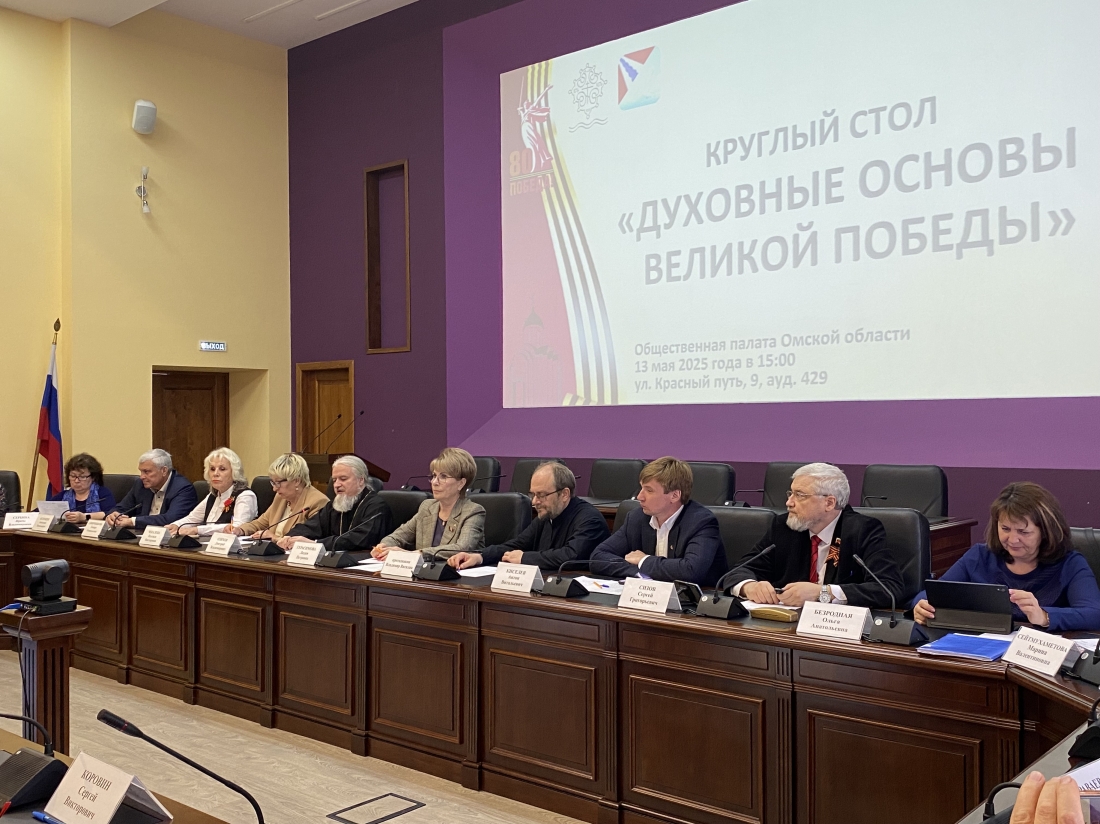 13 мая, в рамках проведения в Российской Федерации Года Защитника Отечества и 80-летия Великой Победы, в Общественной палате Омской области состоялся круглый стол «Духовные основы Великой Победы». Организаторы круглого стола Омская епархия и Общественная палата омской области.