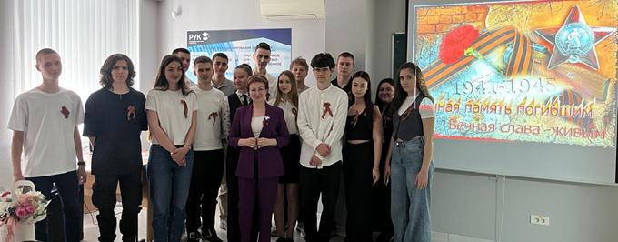 Восприятие документальных кадров, сопровождаемых стихами и пронзительными песнями, произвели огромное впечатление на ребят. Встреча прошла торжественно, и, в то же время, интерактивно - вспомнили военные песни, ответили на вопросы викторины, поделились своими впечатлениями. Свой вклад в мероприятие внесли и наши гости - куратор Загнитко Светлана Николаевна со студентами группы второго курса направления подготовки "Экономика".