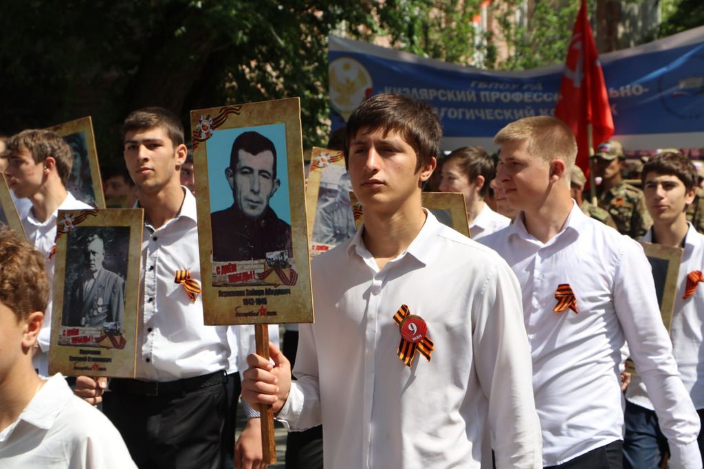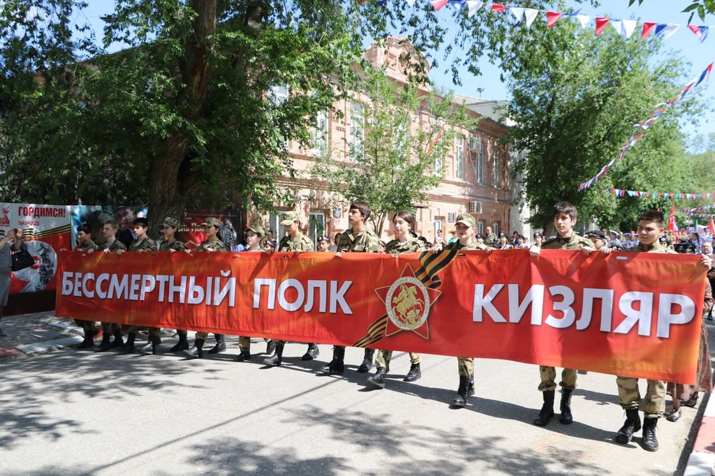 Ровно в 10:00 9 мая сотни кизлярцы всех возрастов в едином строю прошли торжественным маршем по главной улице города от мэрии до центральной площади в день празднования Победы в Великой Отечественной войне. Колонну возглавили юные барабанщицы и знаменные группы. В массовом шествии приняли участие мэр Кизляра Александр Шувалов, председатель горсобрания Александр Полюшко, военком Рамазан Курамагомедов, гендиректор АО «Концерн КЭМЗ» Ибрагим Ахматов, руководители организаций, депутаты, почетные граждане города.