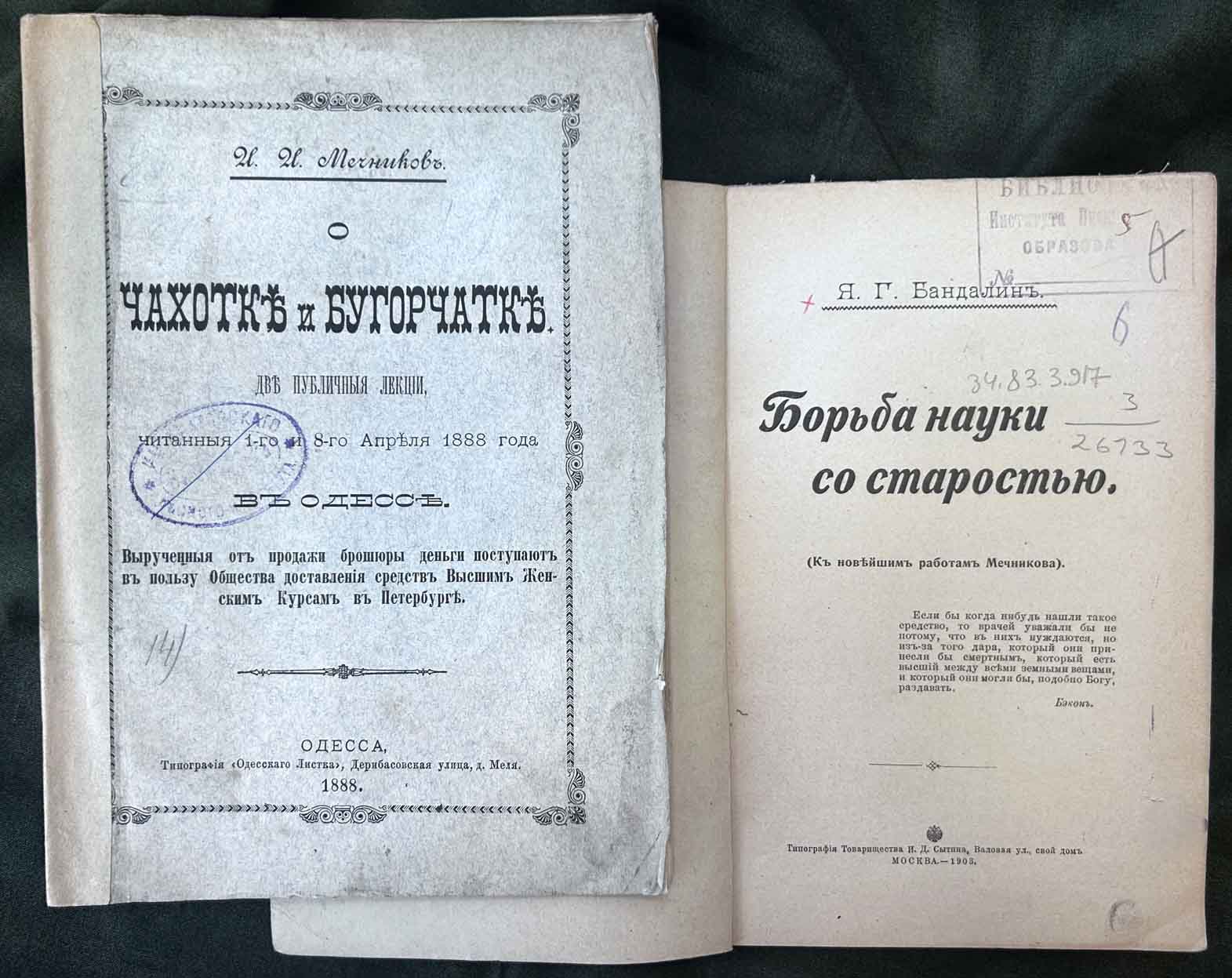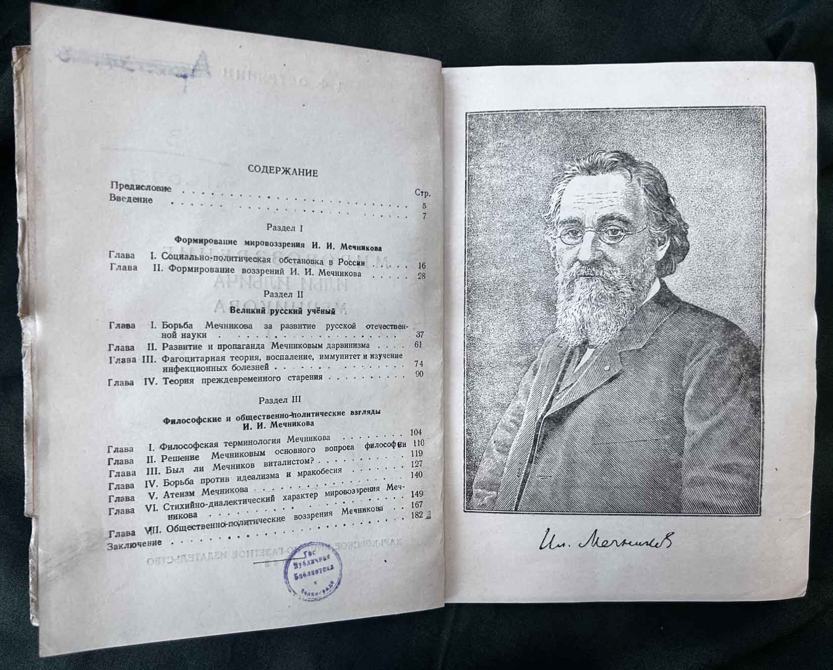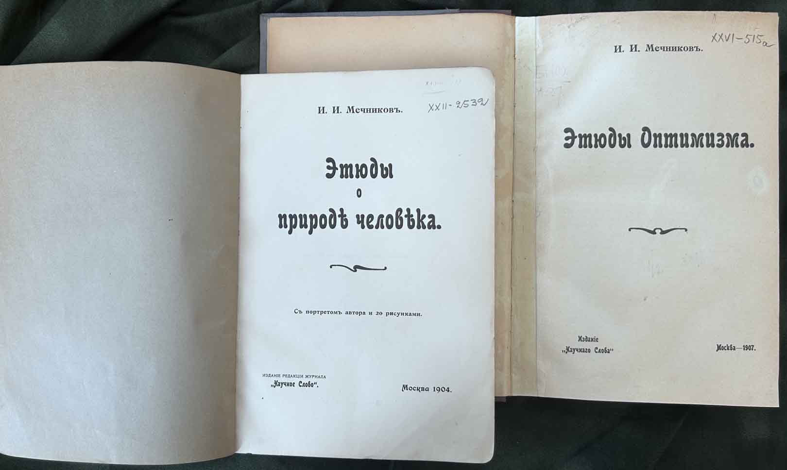 Также в экспозиции представлены философские работы Ильи Мечникова - «Этюды о природе человека. Опыт оптимистической философии» (1904 г.); «Этюды оптимизма» (1907 г.) и «Сорок лет искания рационального мировоззрения» (1913 г.).
