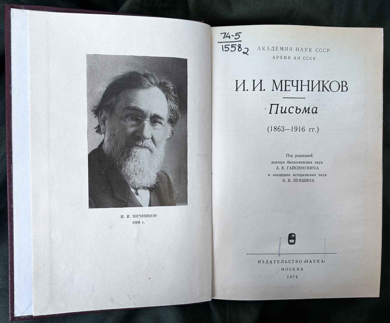 Ценным источником для воссоздания жизни и творчества Ильи Мечникова служат его письма к русским и иностранным ученым, общественным и политическим деятелям, писателям и издателям, опубликованные в 1974 г. архивом АН СССР и охватывающие период 1863-1916 гг.