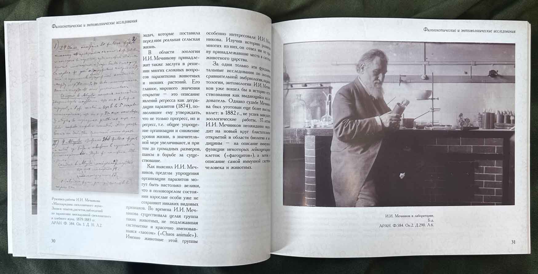 В монографию-альбом «Российский лауреат Нобелевской премии Илья Ильич Мечников (1845-1916)» Татьяны Ульянкиной включены индивидуальные и групповые фотографии, рисунки ученого из фонда И.И.Мечникова в Архиве РАН. Многие документы введены в научный оборот впервые.