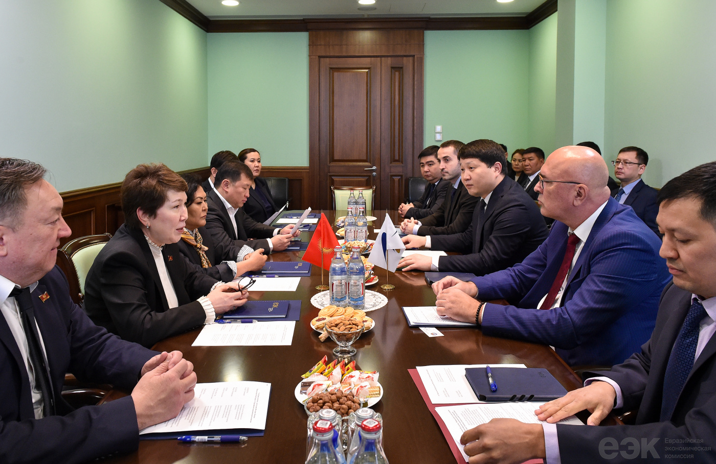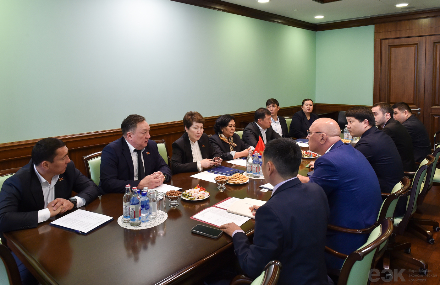 Дальнейшее развитие экономического сотрудничества Кыргызской Республики с партнерами по Евразийскому экономическому союзу обсудили на встрече министра по интеграции и макроэкономике Евразийской экономической комиссии Эльдара Алишерова с депутатами Жогорку Кенеша Кыргызской Республики. Акцент был сделан на реализации Стратегических направлений развития евразийской экономической интеграции до 2025 года и Декларации о дальнейшем развитии экономических процессов в рамках Евразийского экономического союза до 2030 года и на период до 2045 года «Евразийский экономический путь».