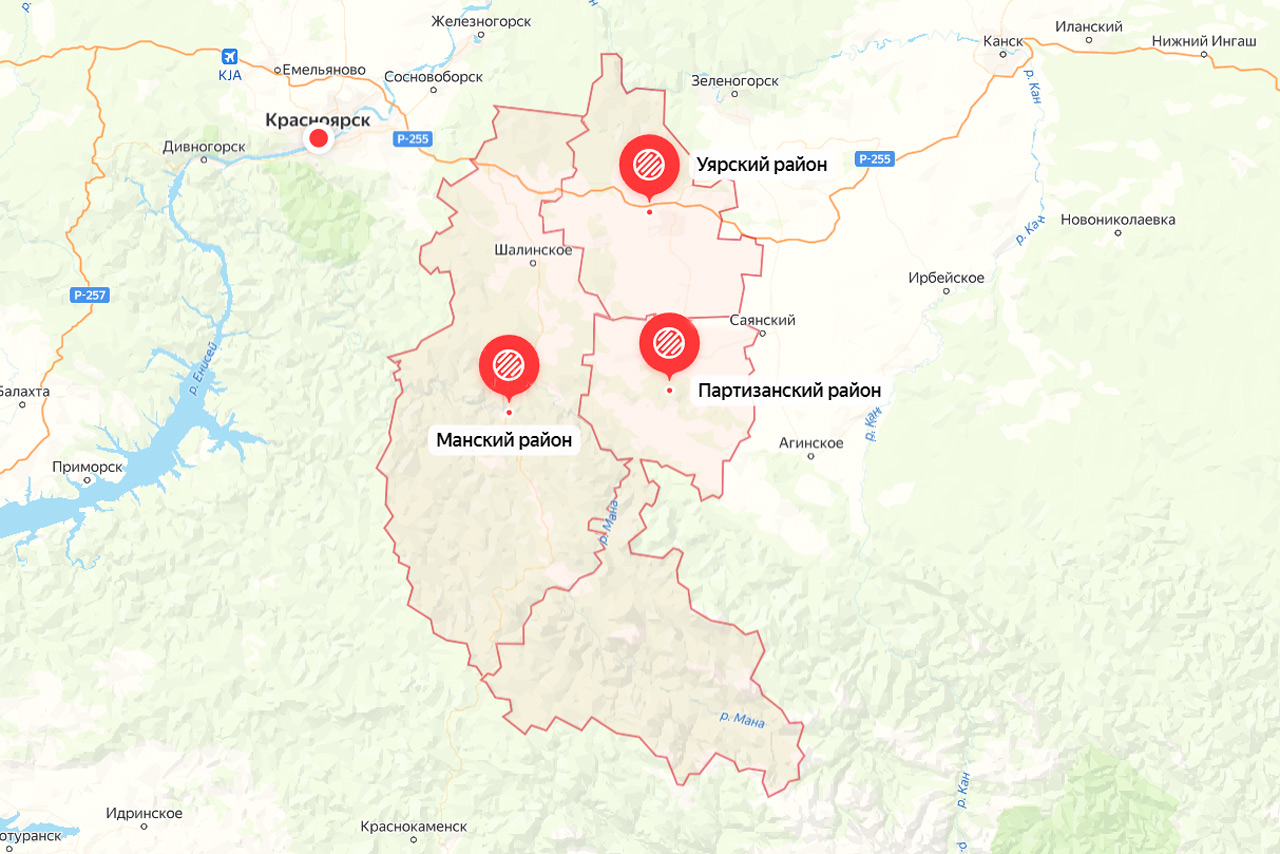 При выборе названия для трех объединенных территорий Манский и Партизанский район условно посчитали за один, так как оба расположены на земле, по которой протекает Мана